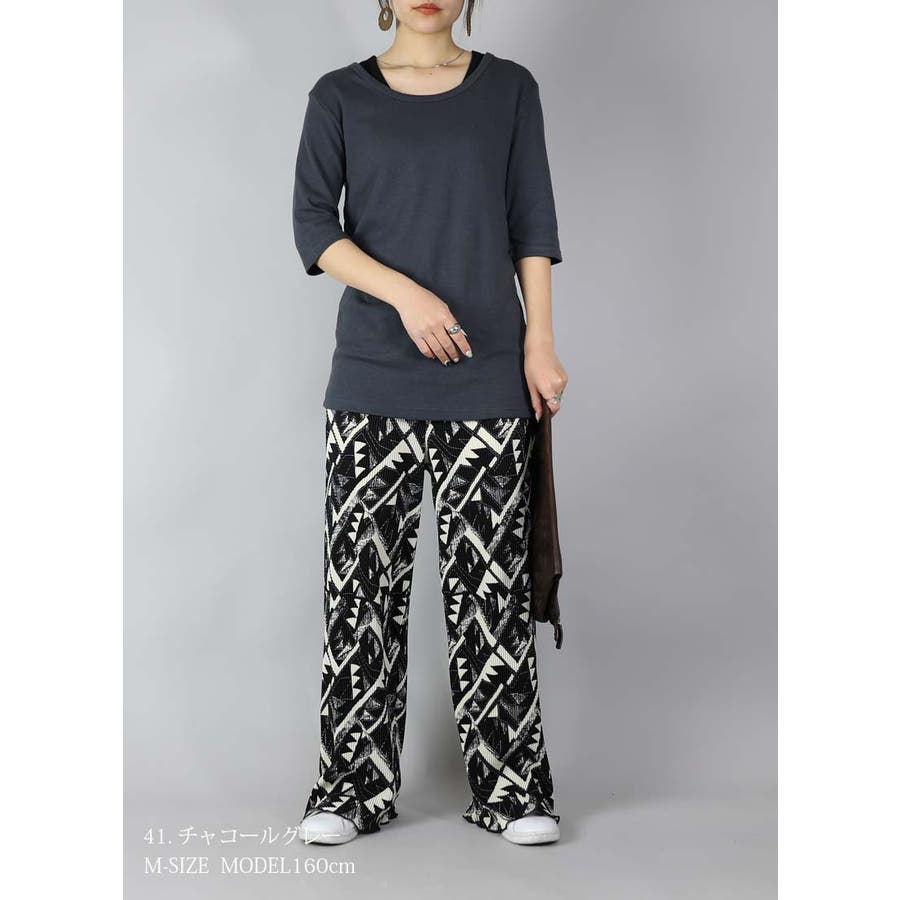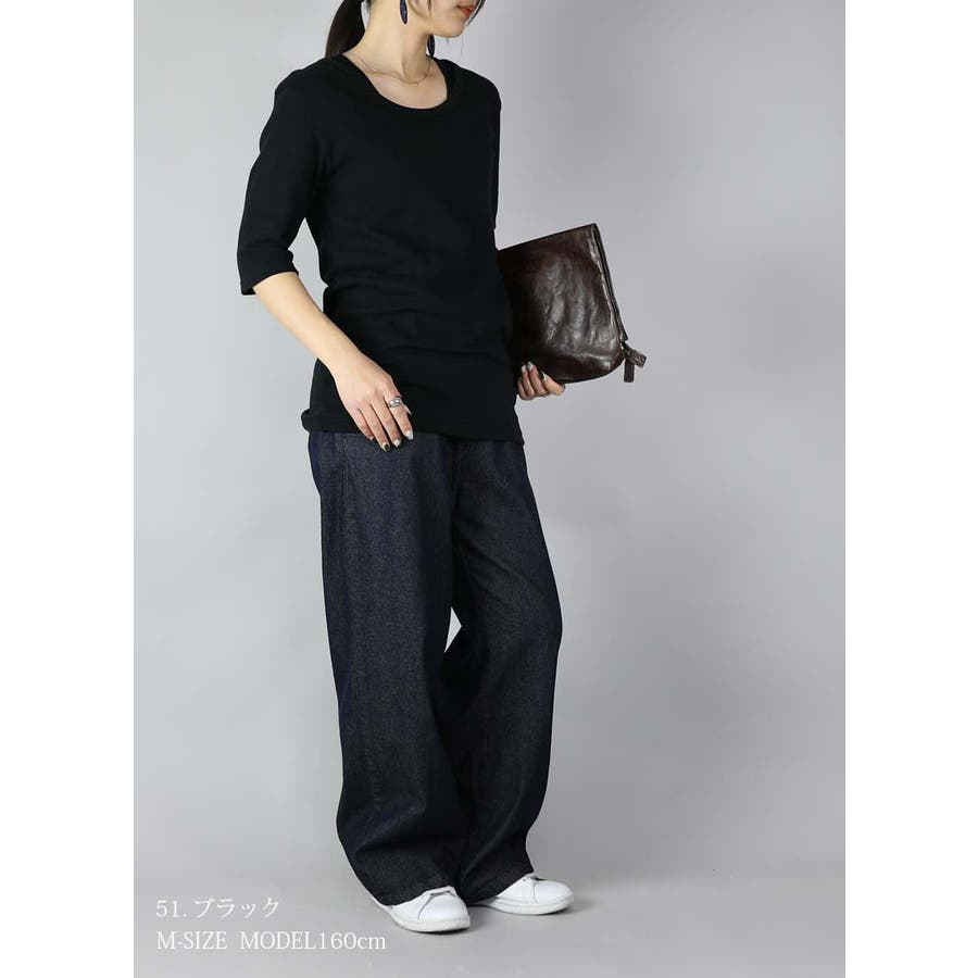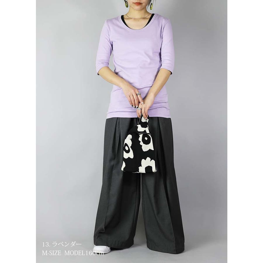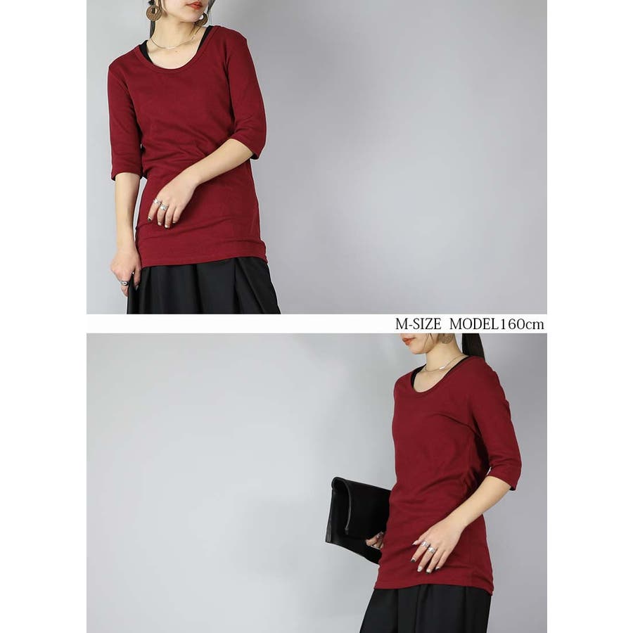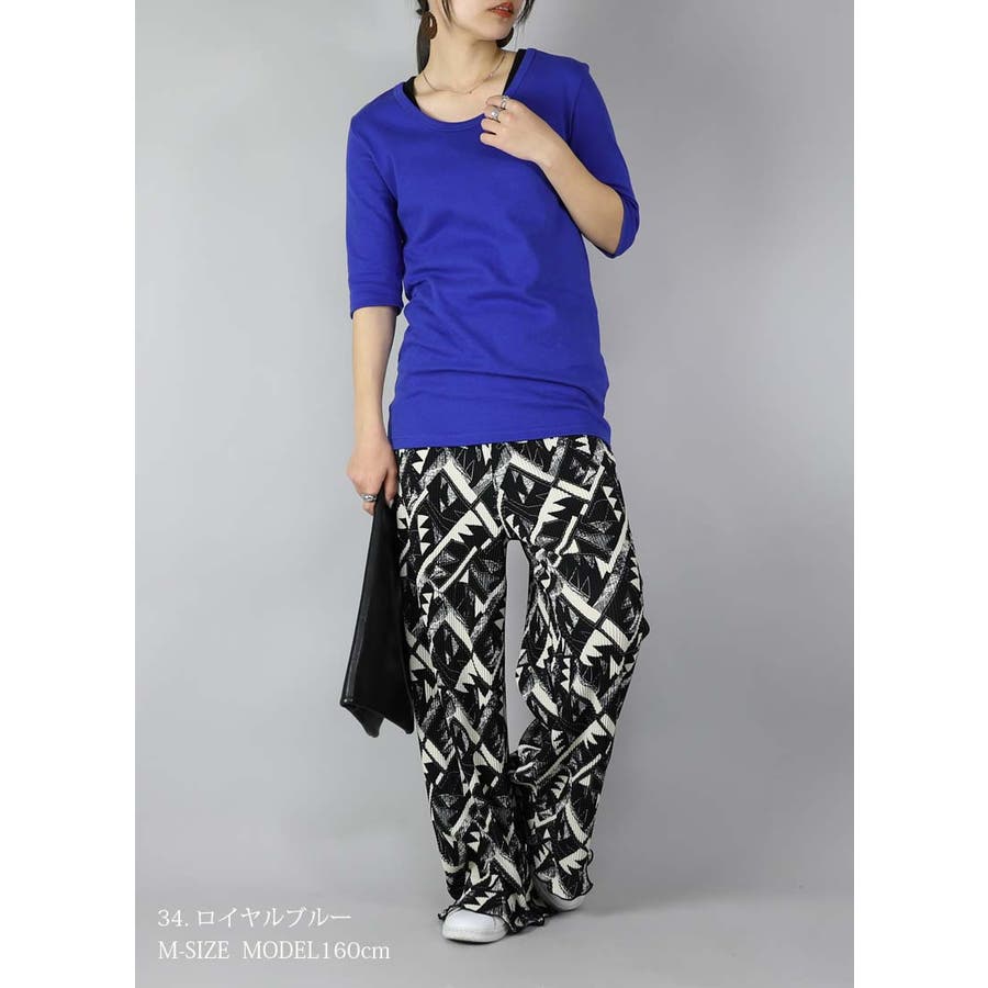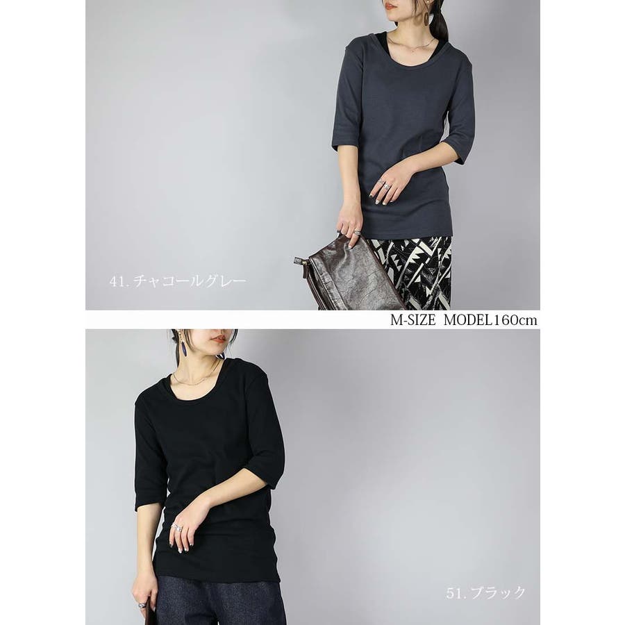 【M~LL】日本製5分袖スムースコットンロングカットソー ♪ レディース