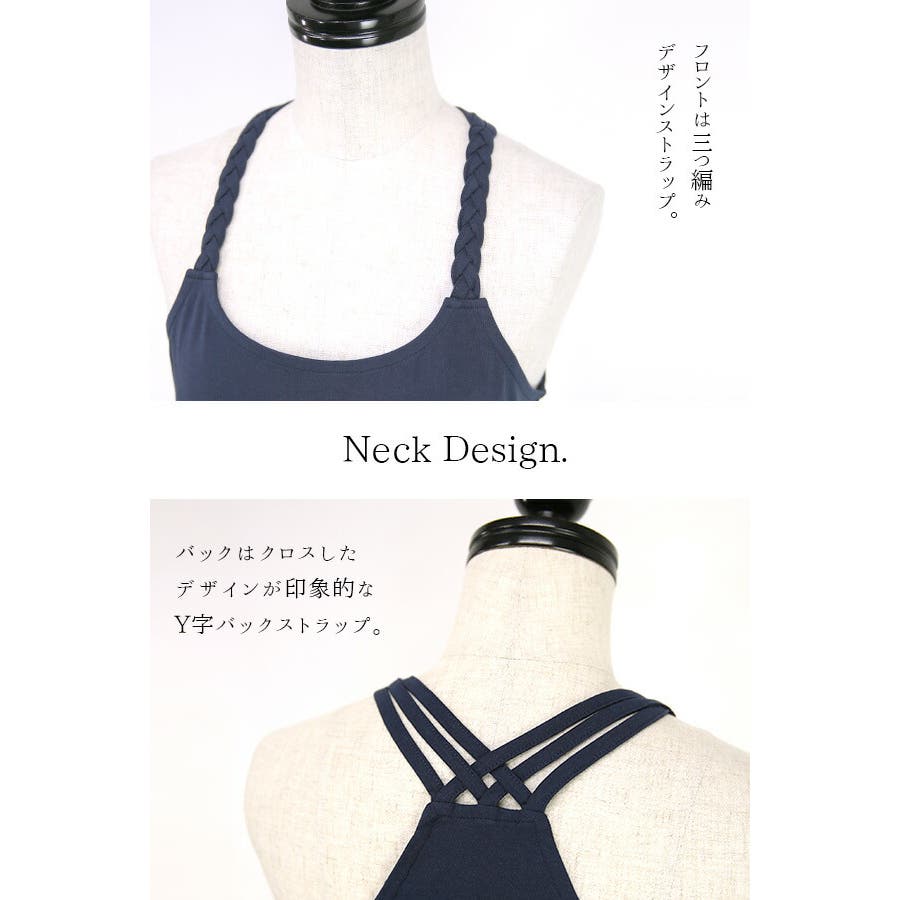 【54ネイビ-(再入荷分)】三つ編みストラップコットンキャミソール ♪ レディース