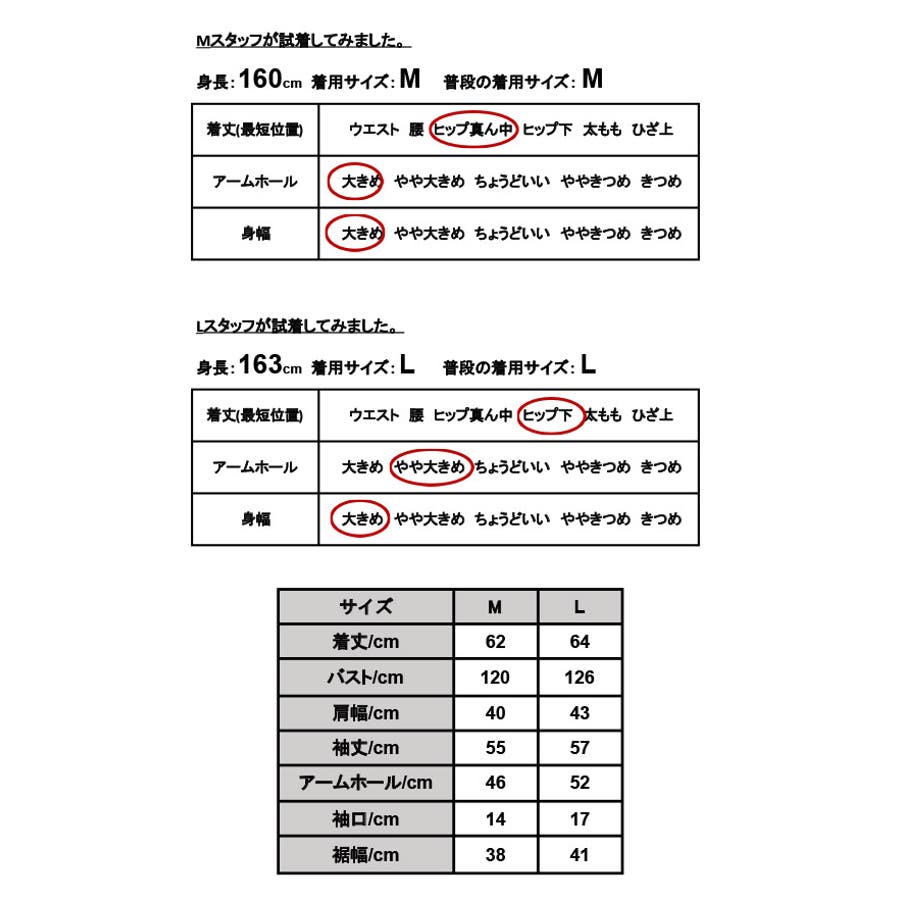 着丈:約77、バスト:約124、肩幅:約47、袖丈:約57、アームホール:約49、ネック:(幅)約33(深さ)約17、袖口:約8~10、裾幅:約35~50