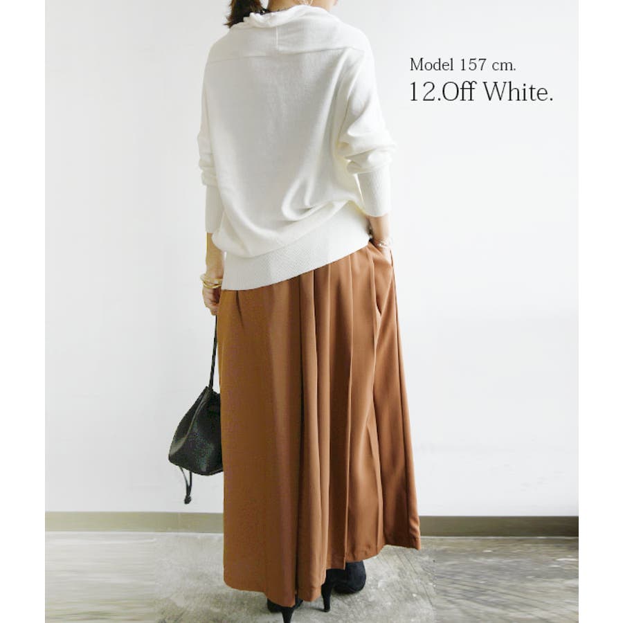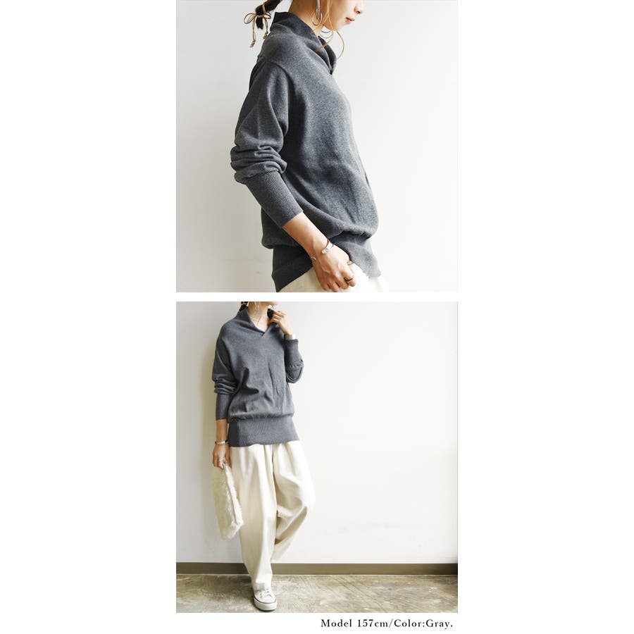 さらりとしたコットン100%ニットで快適な着心地を実現。ゆったりしたシルエットに首のくしゅ感がこなれた印象。