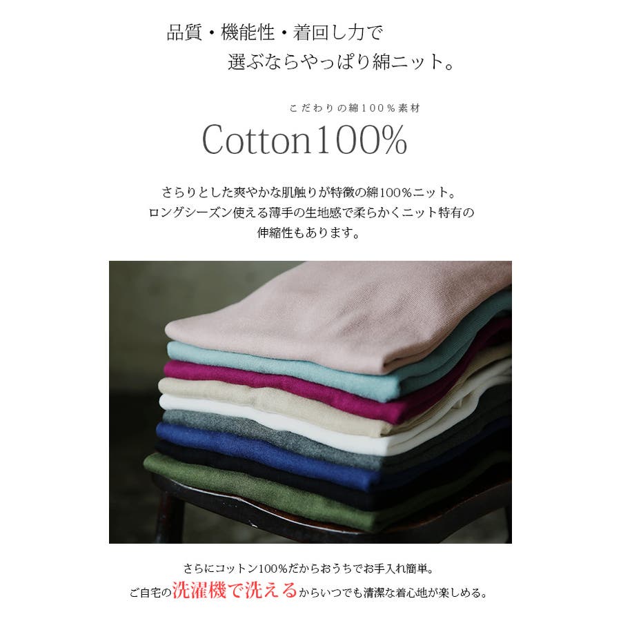 投稿日:2024.01.14綿ニットは季節を選ばず、洗濯にも強いのが魅力で探していたらこの商品に出会いました。襟のあき具合もちょうど良く、色も綺麗です。
