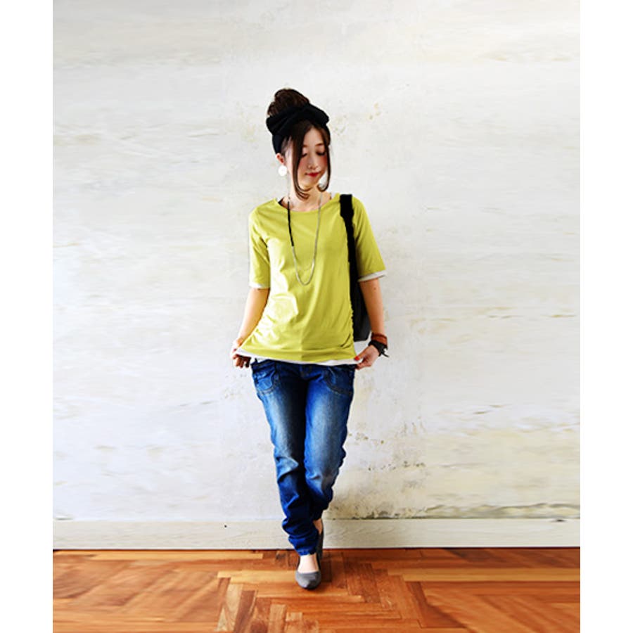 シンプルにおしゃれ楽しめる、ラフな感じがいいし、7分丈だから春先と秋にいい!捲る手間省けるし普段着?というか、当たり障りないデザインなのも安定