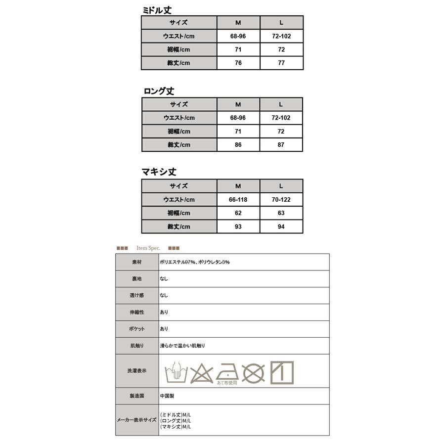 | サイズ | Mミドル丈 / Lミドル丈 |