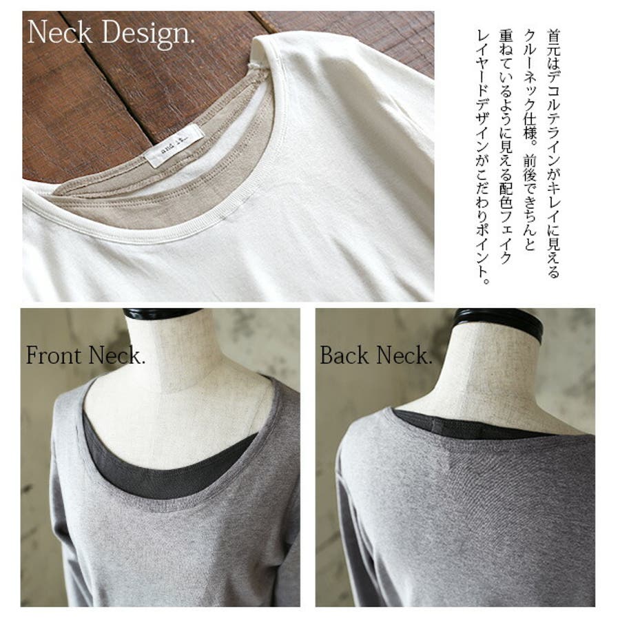 1枚で簡単にお洒落になれちゃう配色フェイクレイヤード!コットンの優しい着心地とくしゅくしゅシャーリングにヤミツキになる主役カットソーです。