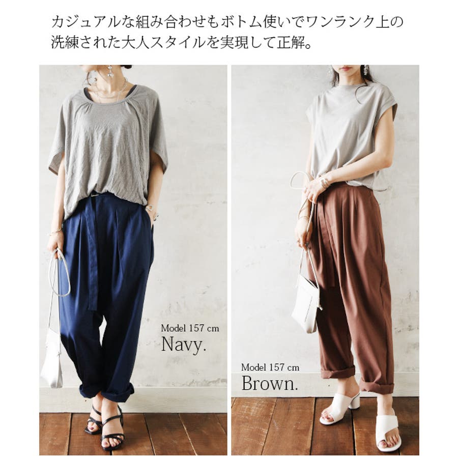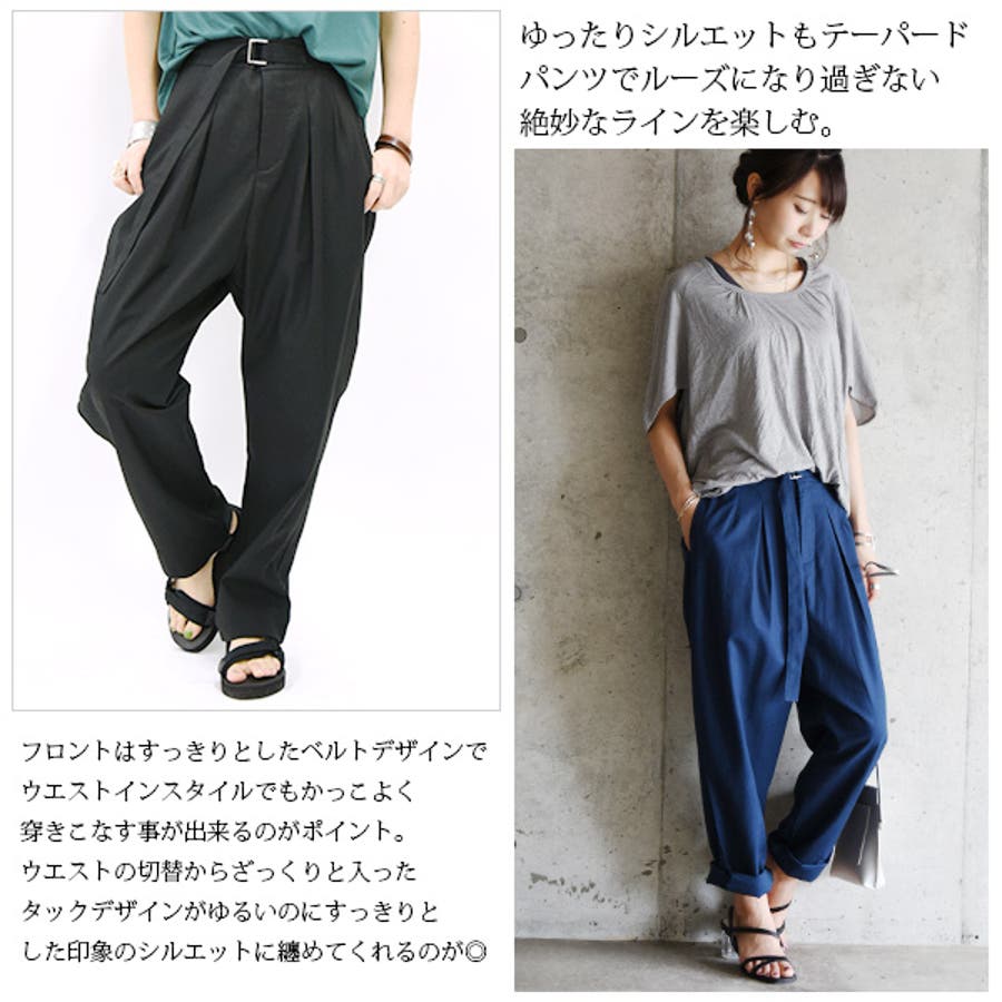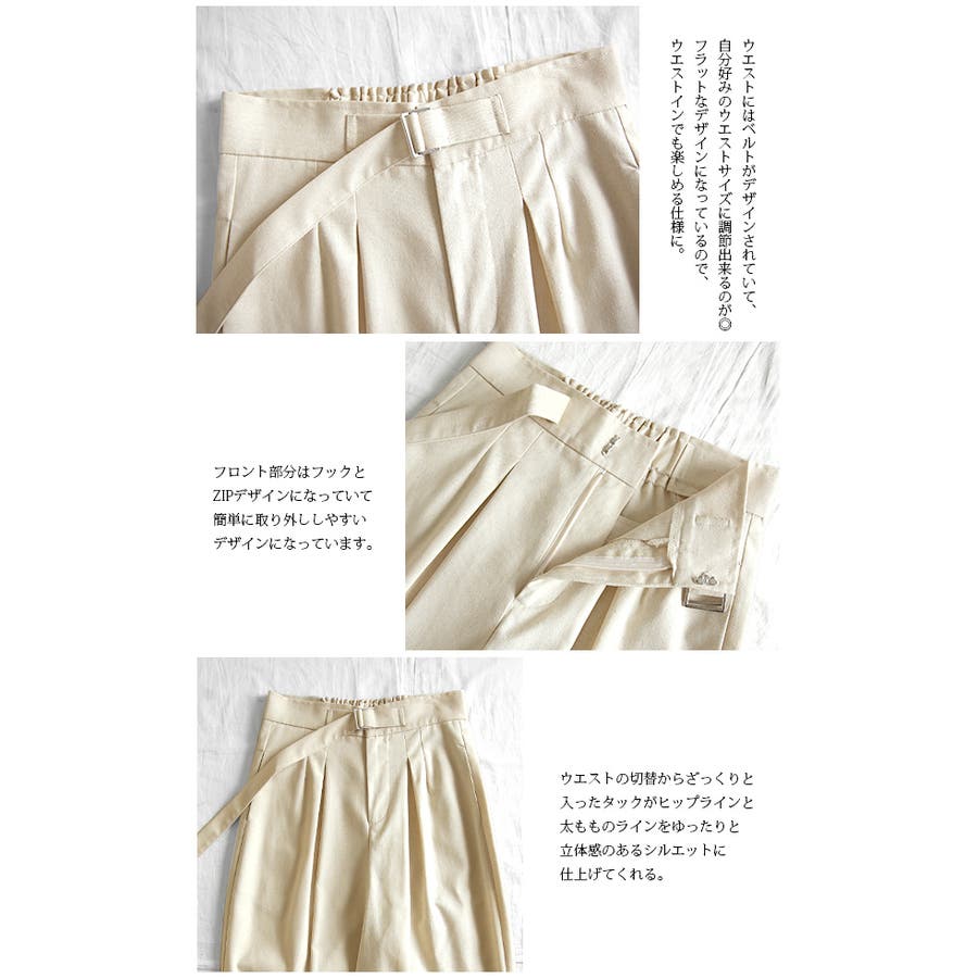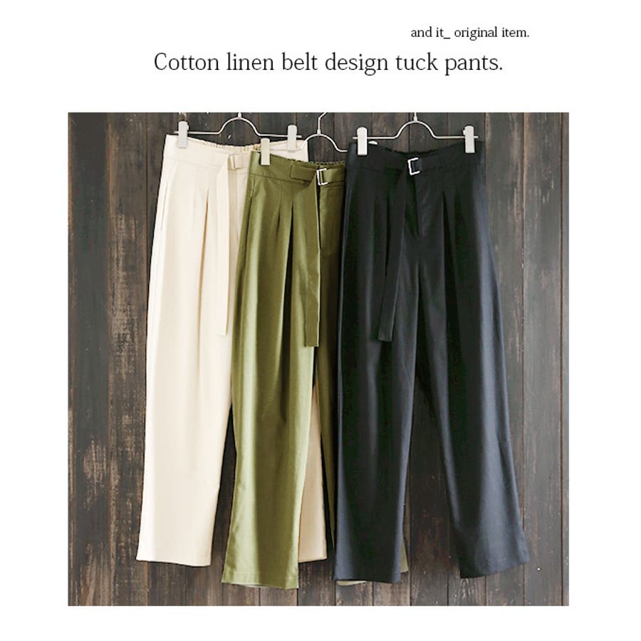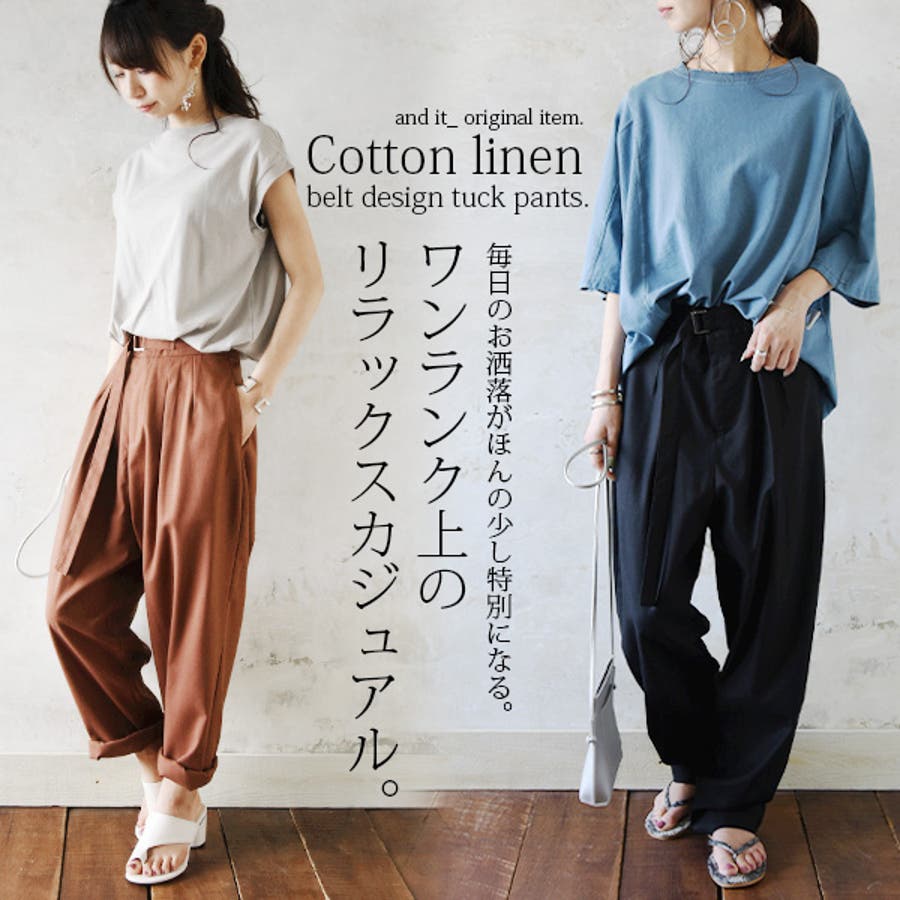 【and it_】コットンリネンベルトデザイン変形タックパンツ【M】レディース …