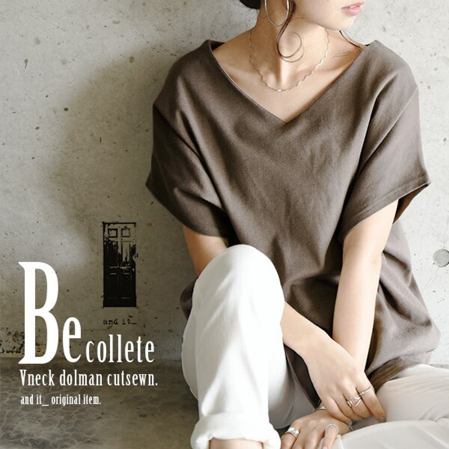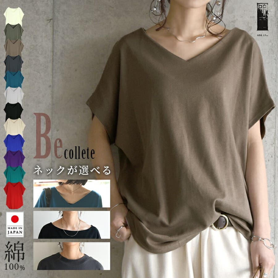 BeコルテVネック半袖ドルマンカットソー 綿100% 日本製