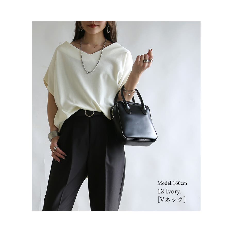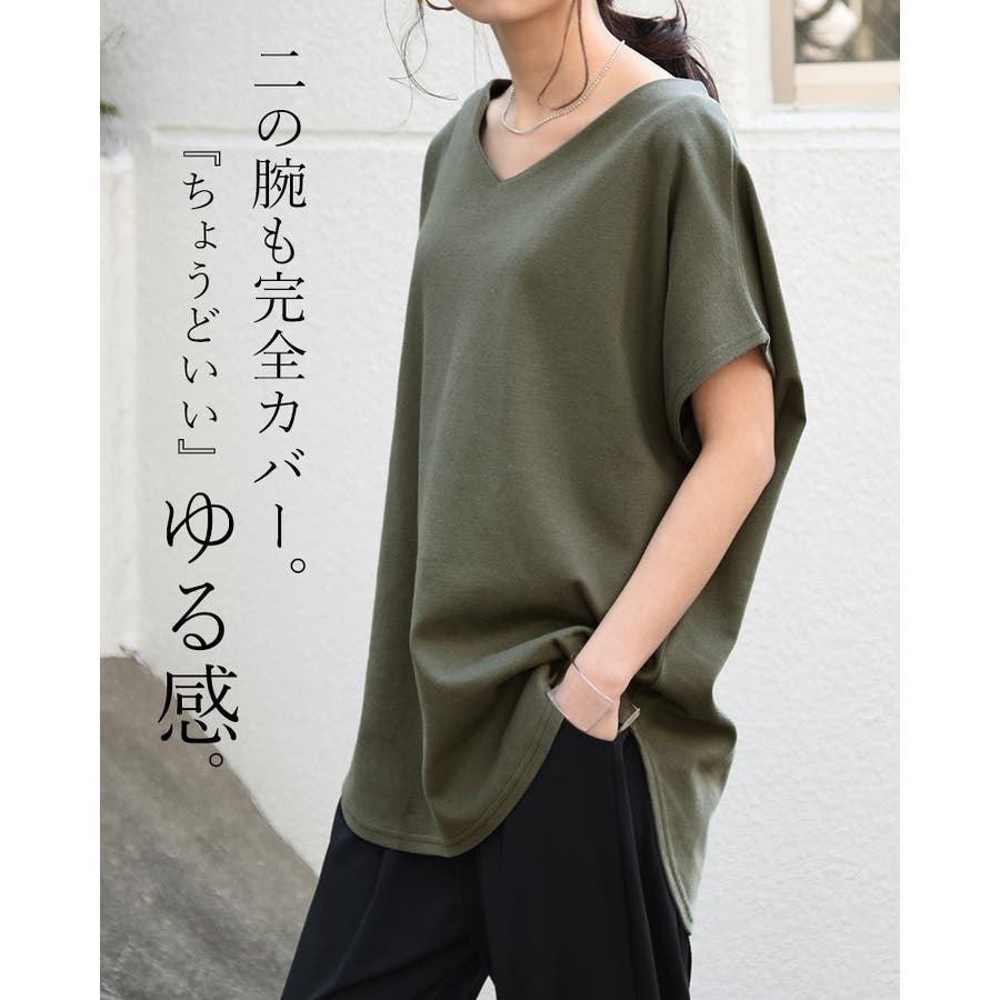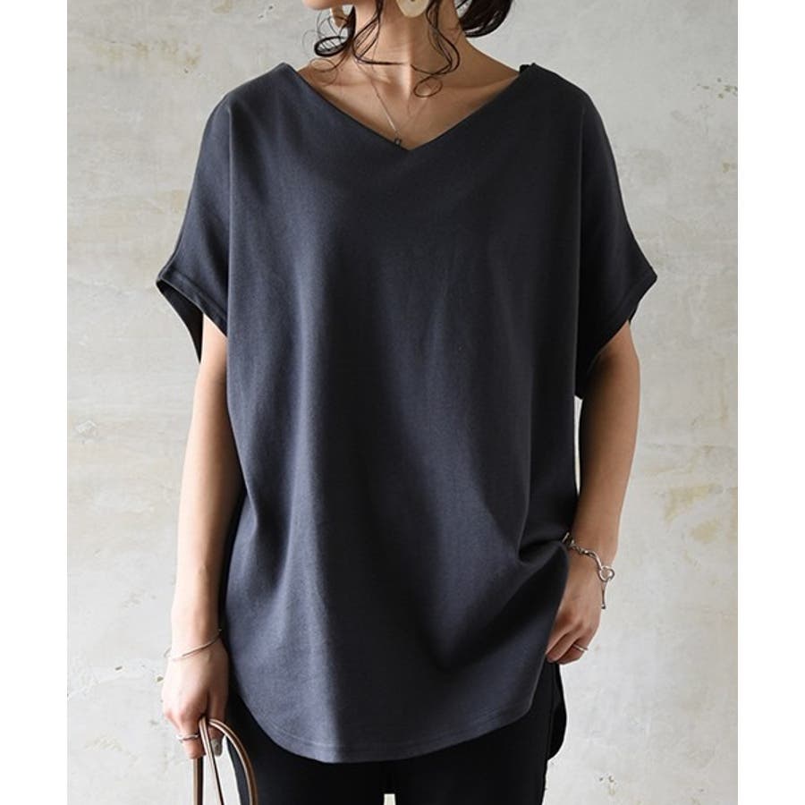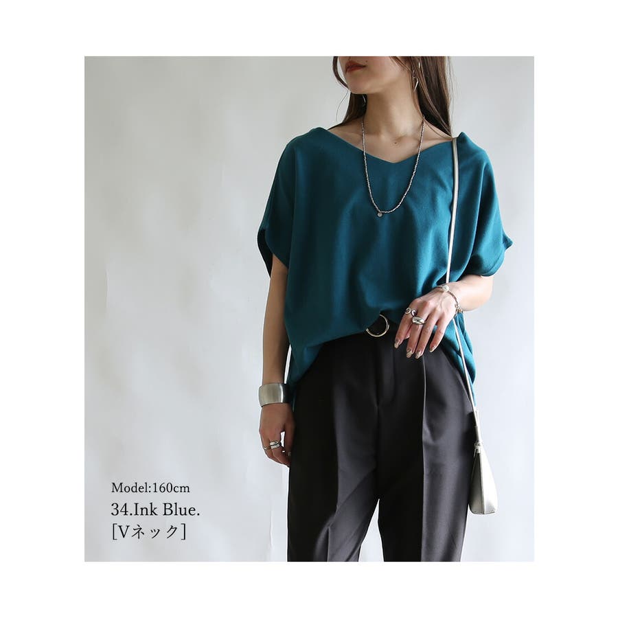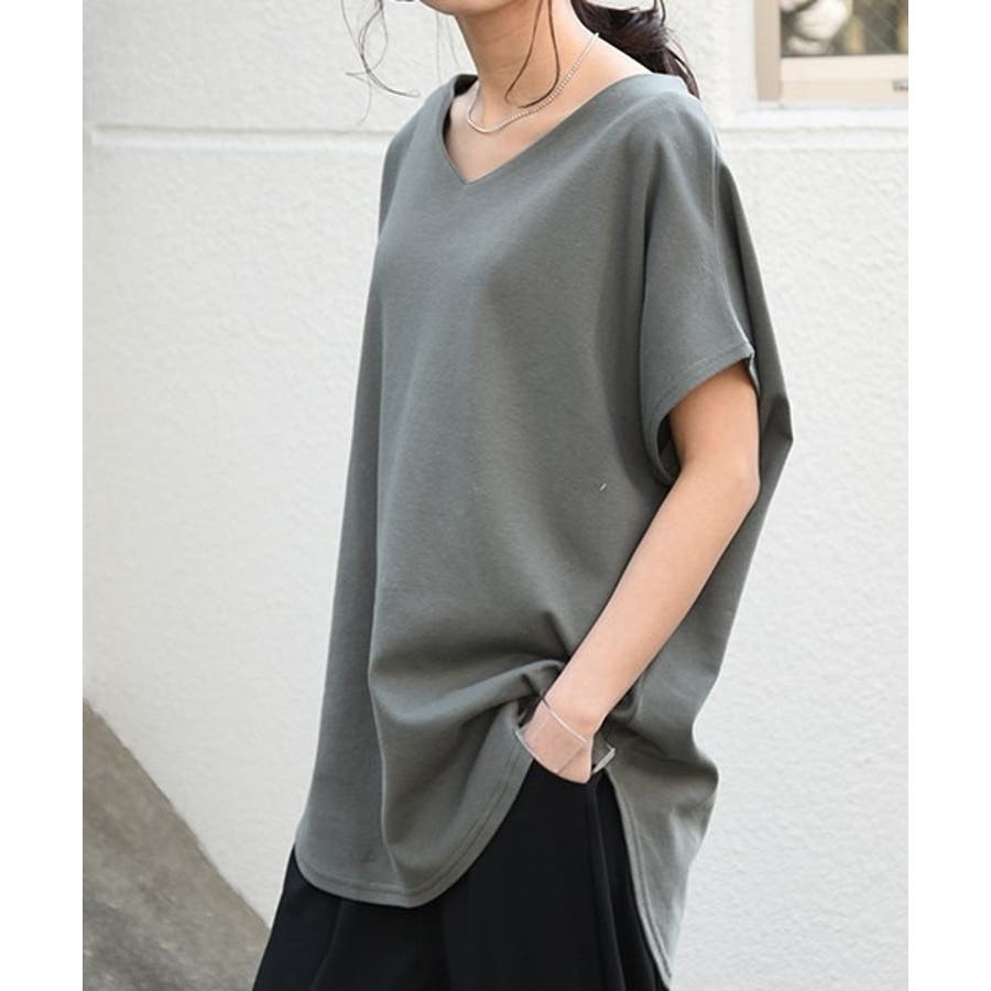 すっきりとしたVネックと女性らしいドルマンシルエット☆日本製のしっかりとした生地感です◎