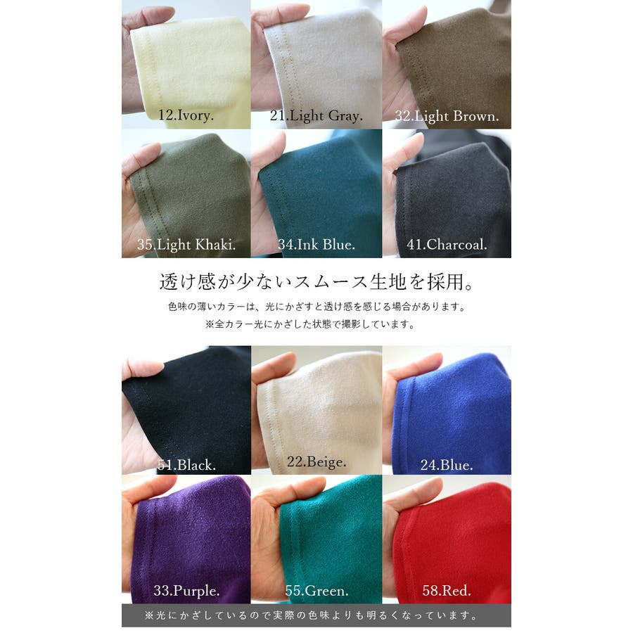| カラー | 12アイボリー / 35ライトカーキ / 32ライトブラウン / 41チャコール / 34インクブルー / 21ライトグレー / 51ブラック / 22ベージュ / 24ブルー / 33パープル / 55グリーン / 58レッド / 32ライトブラウン |