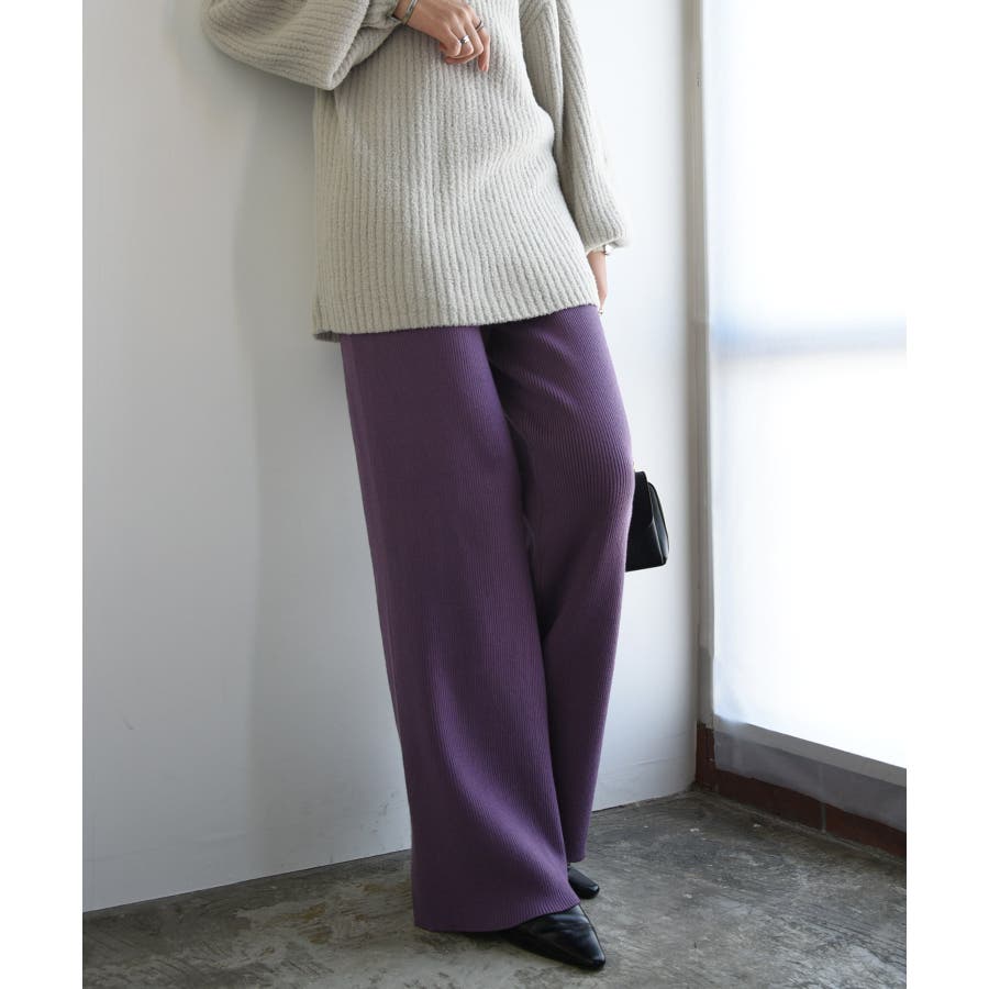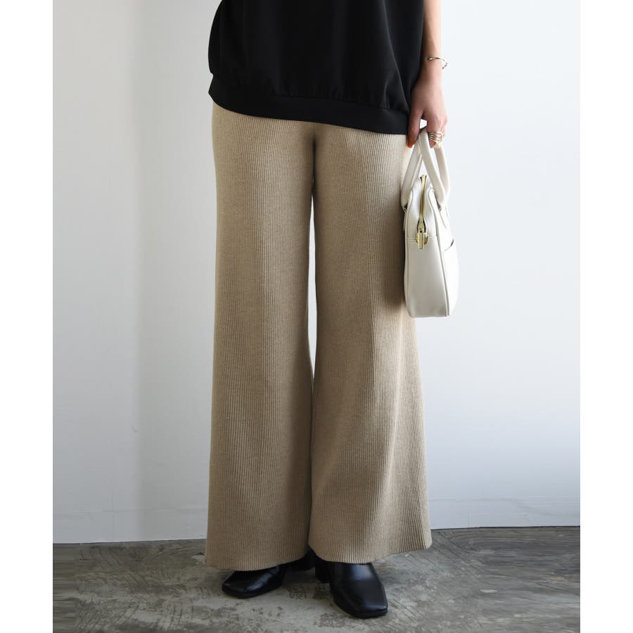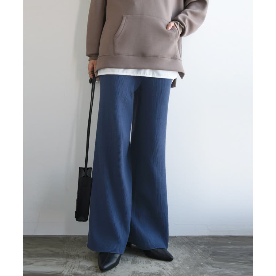 セミワイドで、程良くゆったりとした穿き心地。なめらかな肌触りのリブニット生地。