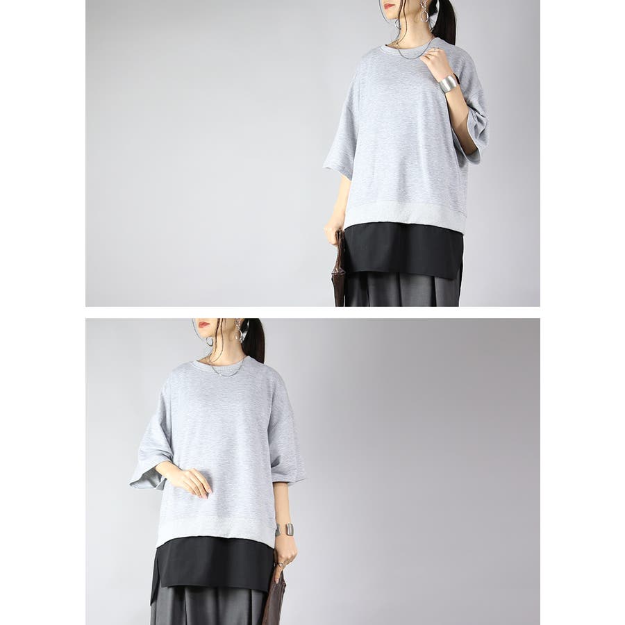 程良くゆとりのある、楽ちんな着心地。柔らかな肌触りのカットソーとハリ感のあるシャツ生地。