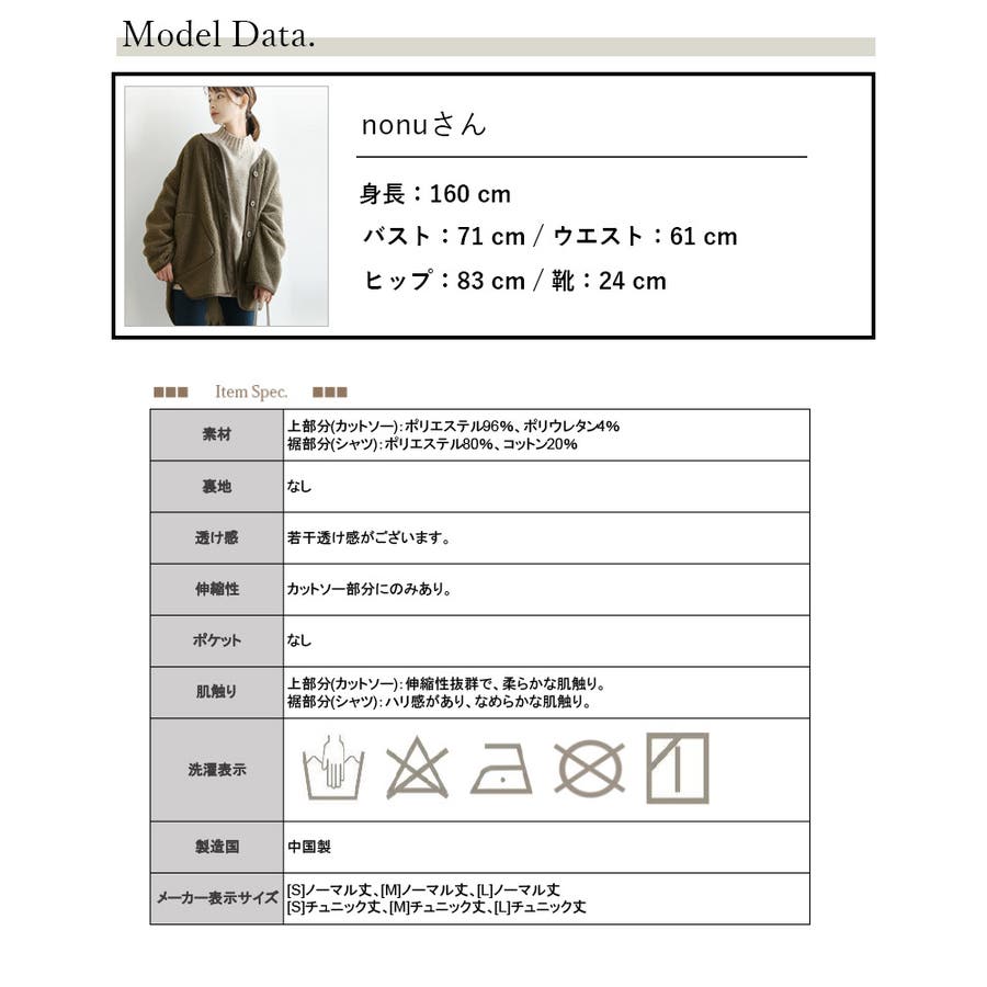 上部分(カットソー):ポリエステル96、ポリウレタン4裾部分(シャツ):ポリエステル80、コットン20