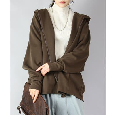ダンボールニットゆったりこなれフルジップパーカー パーカー レディース
