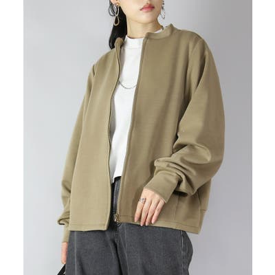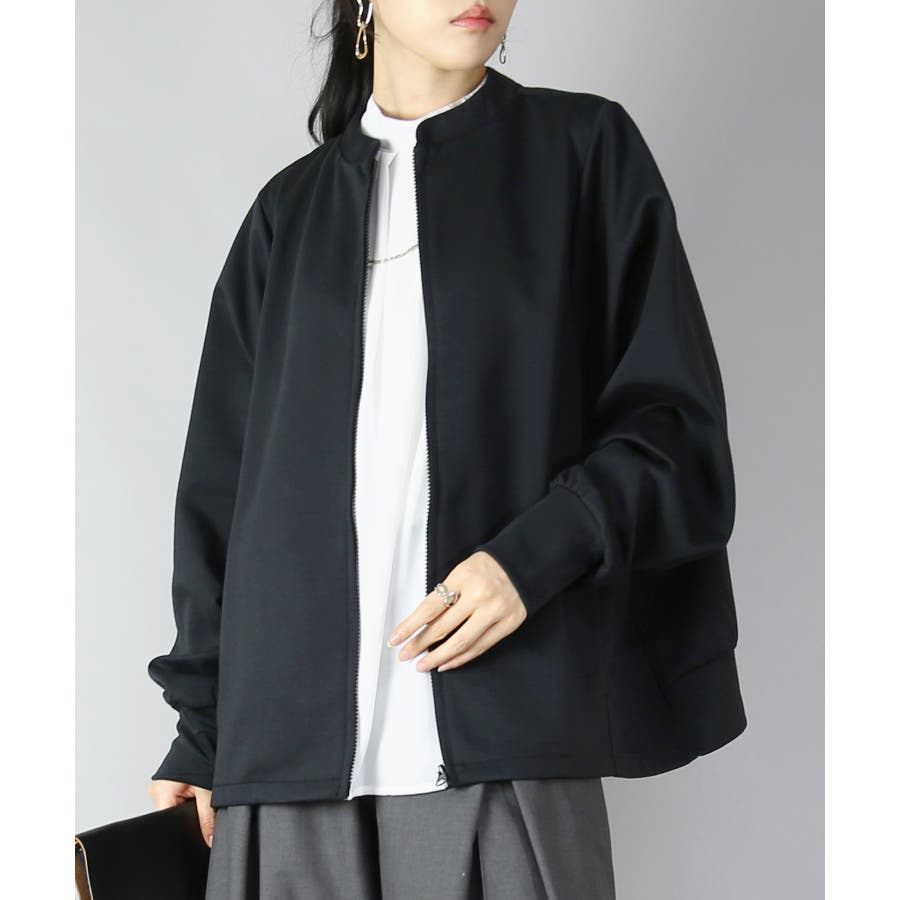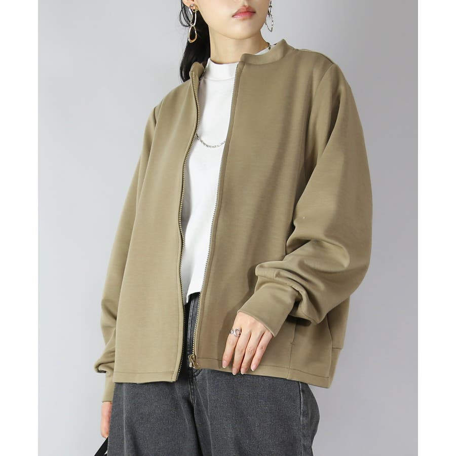 光沢感&ハリ感が上品見えするダンボールニット生地のフルジップトップス。シンプルさと上品さを兼ね備えた万能羽織りアイテムです。
