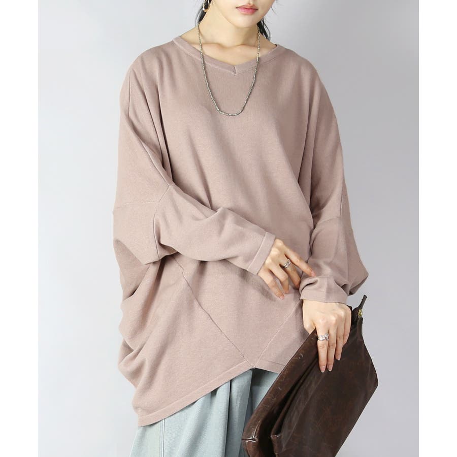 オーバーサイズ×変形が目を惹くデザイン。肌触りの良いコットンニットで優しい着心地です。