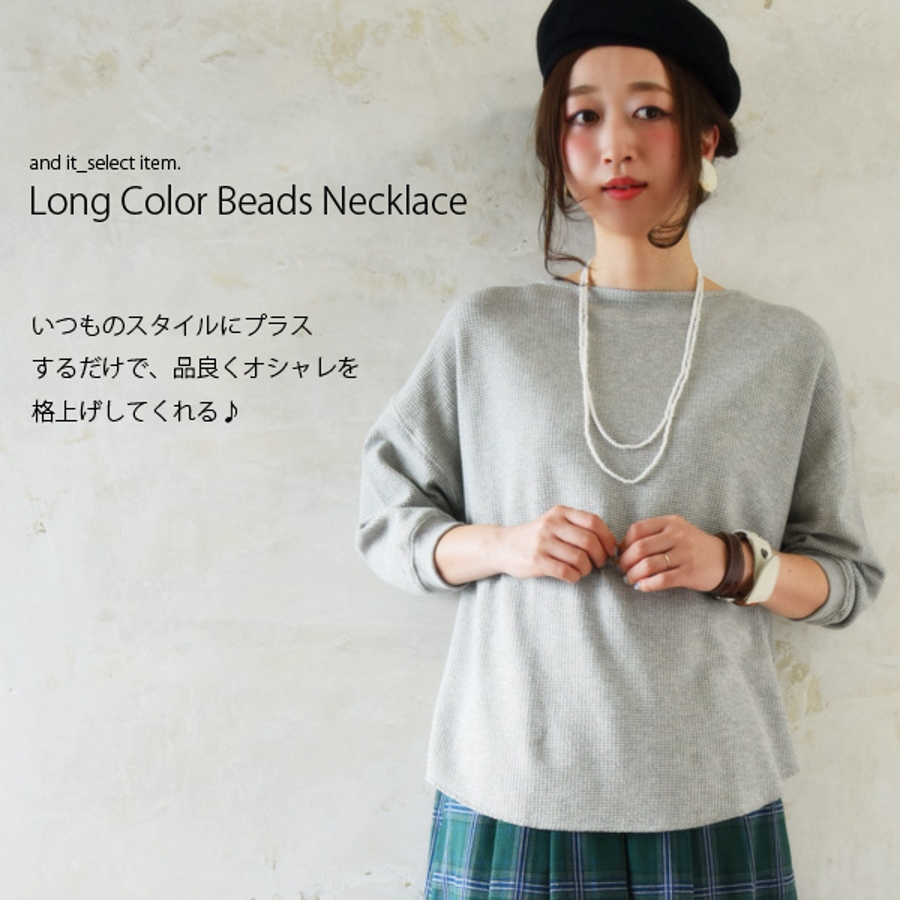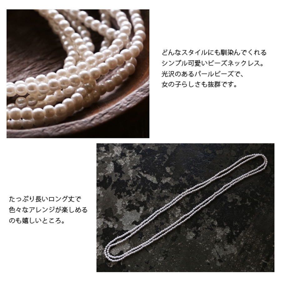 自由にアレンジのできちゃうネックレス!ロングなので2連でも3連でも、結んでも可愛く付けられます◎そのときのコーデやシーンによって変えられるのがGOOD☆直径約4mmの小さなビーズが連なり、控えめながらもコーデにアクセントを加えてくれます。手首に巻けばボリュームのあるブレスレットとしても使えますね♪