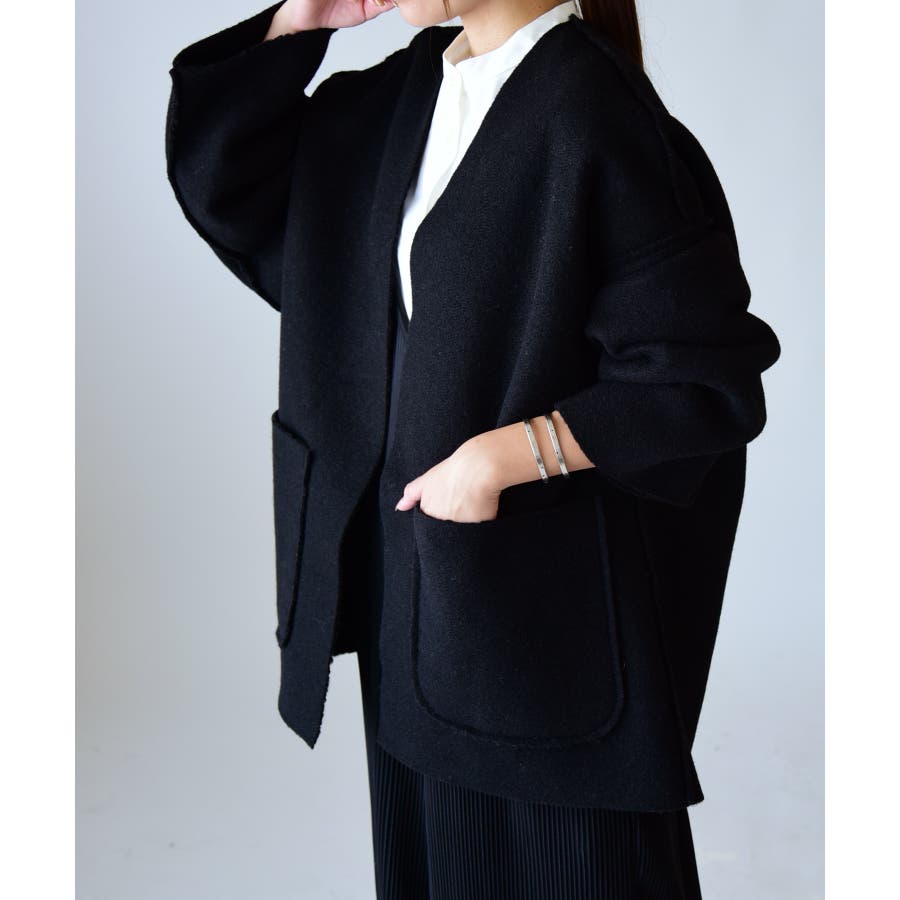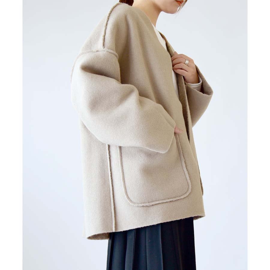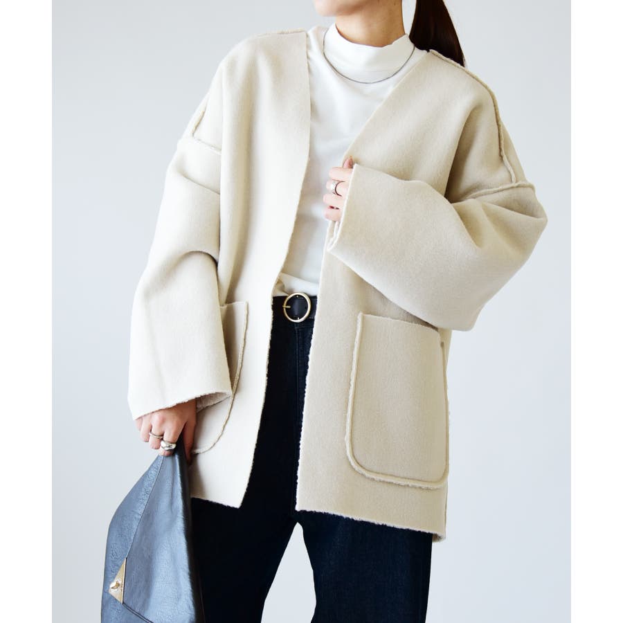 リバーシブルで使えるガウンジャケット。オーバーサイズで大人の抜け感を演出。ウールライクな温かみのある素材です♪