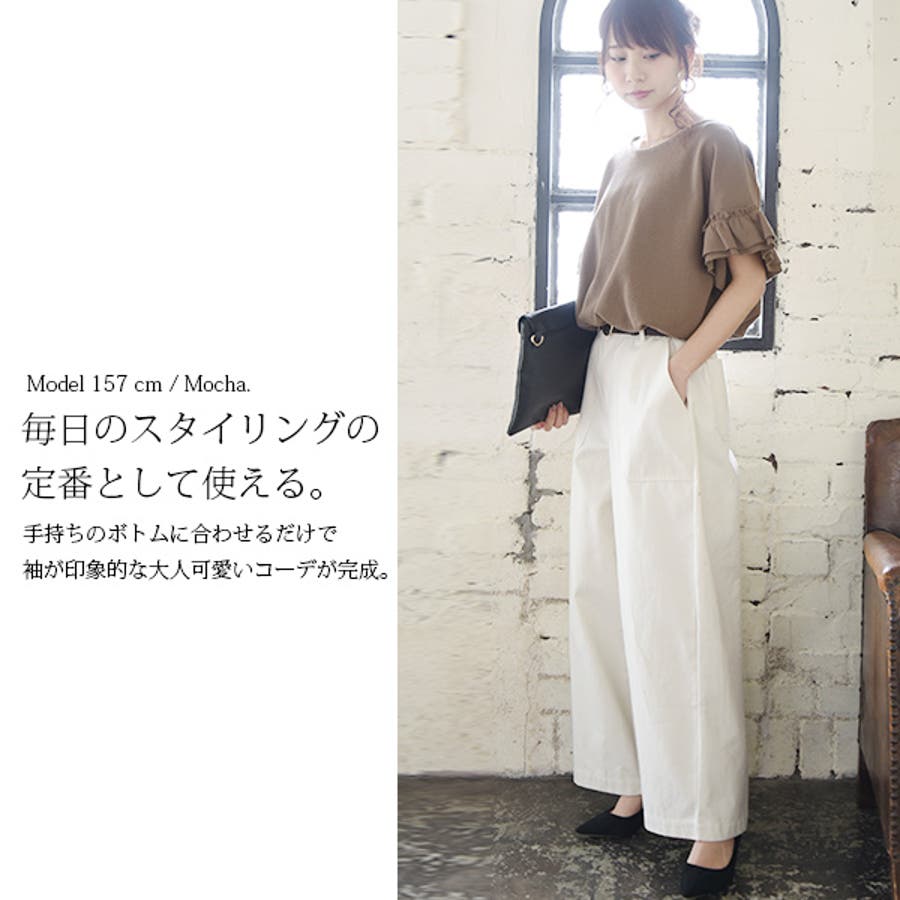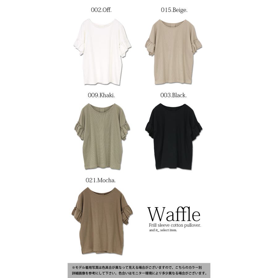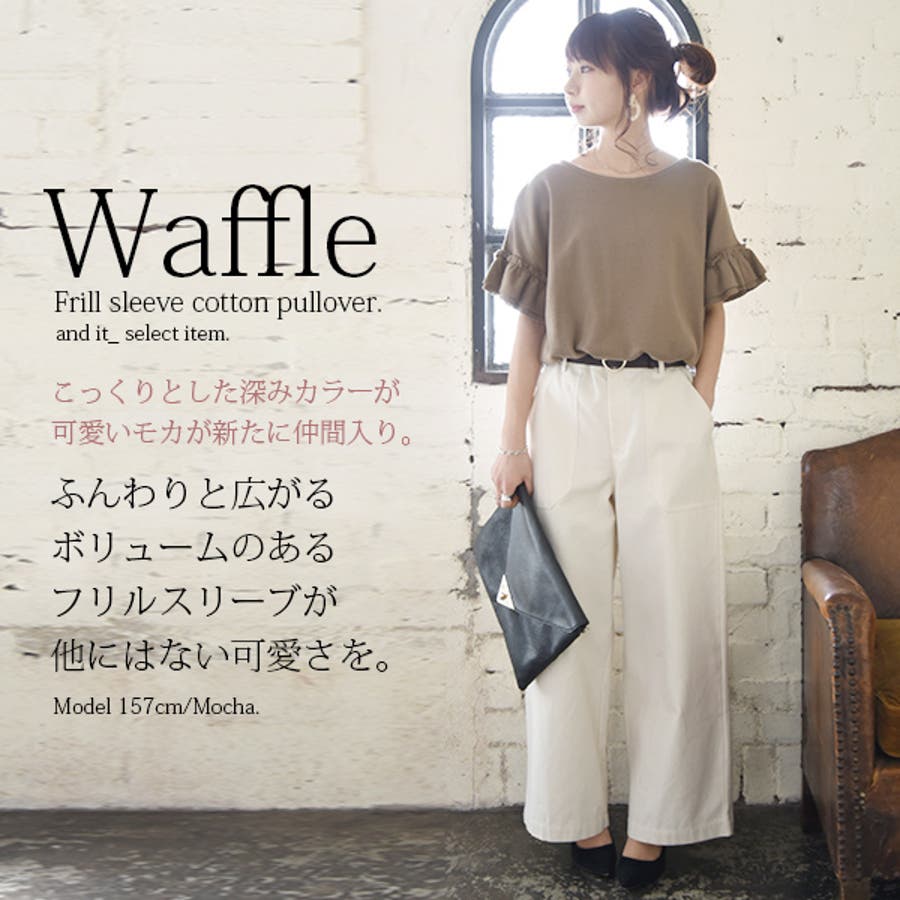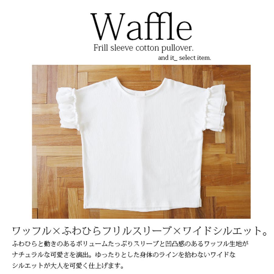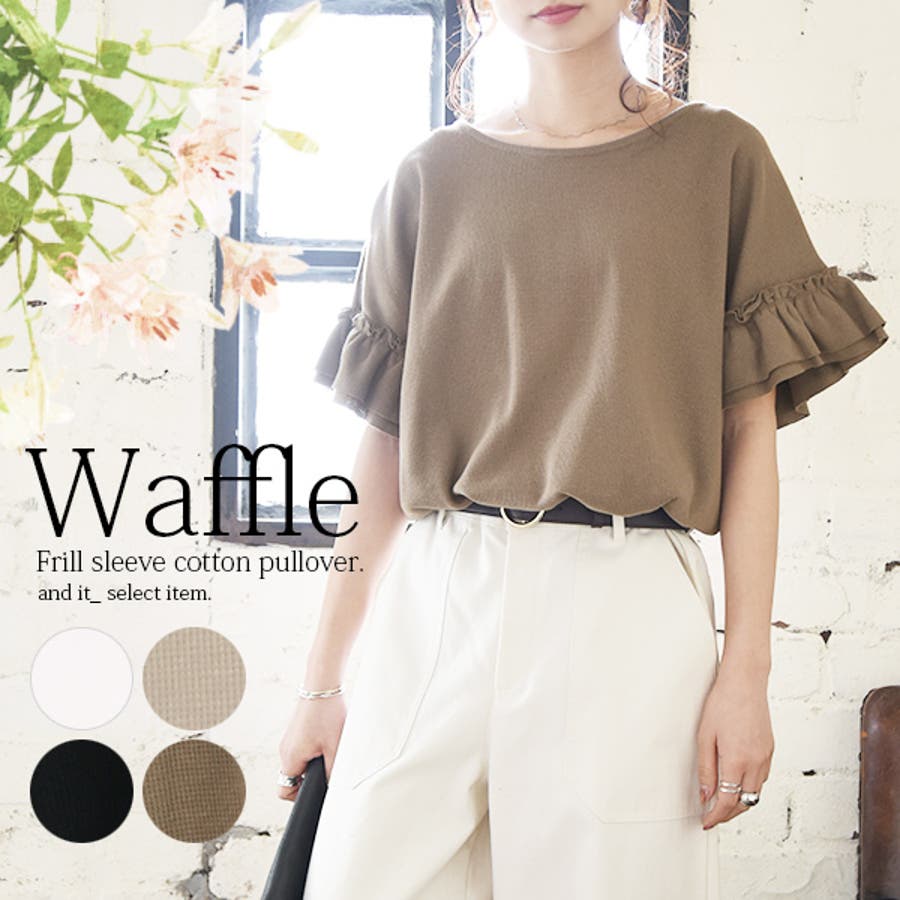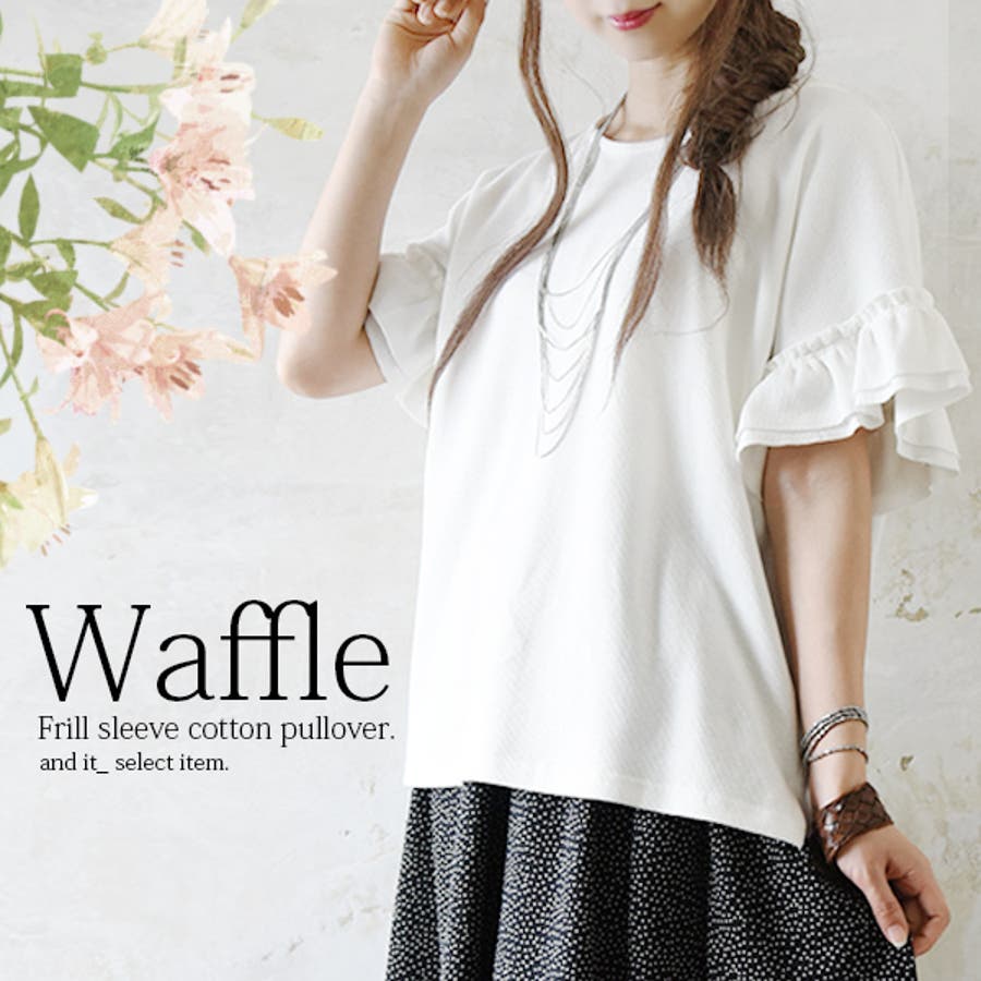 フリルスリーブワッフルコットンプルオーバーレディース 夏 トップス
