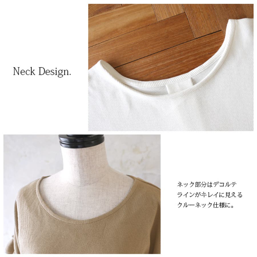 綿100%の柔らかなワッフル素材を使用。フリルスリーブはティアードデザイン♪裾スリット入り。