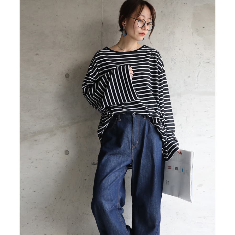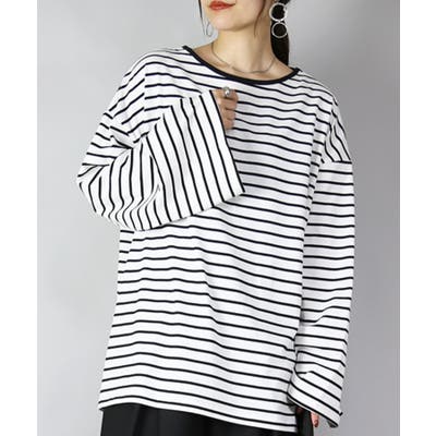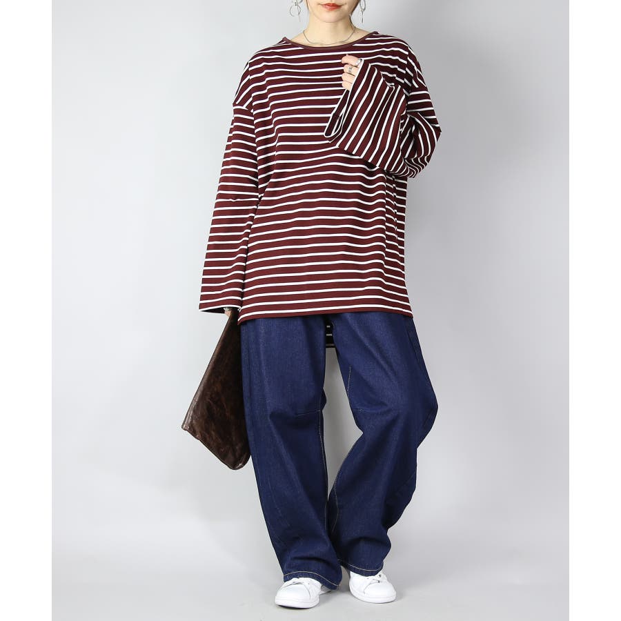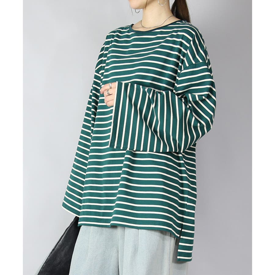 ゆったり着られるオーバーサイズのボーダーロンT。ワイド幅の袖が可愛くトレンド感のあるデザインです。
