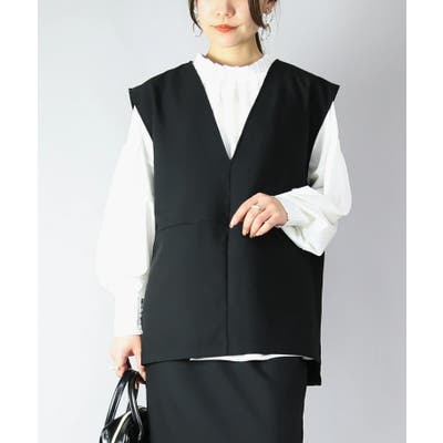 深Vネックと縦ラインでスッキリ見えするベスト。オフィスからオケージョンまで活躍し、セットアップでも着られます。