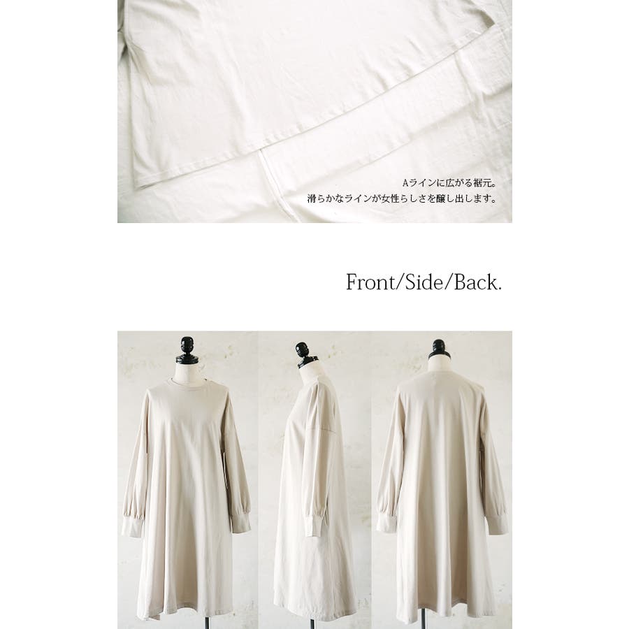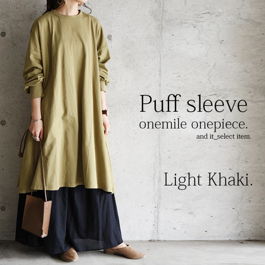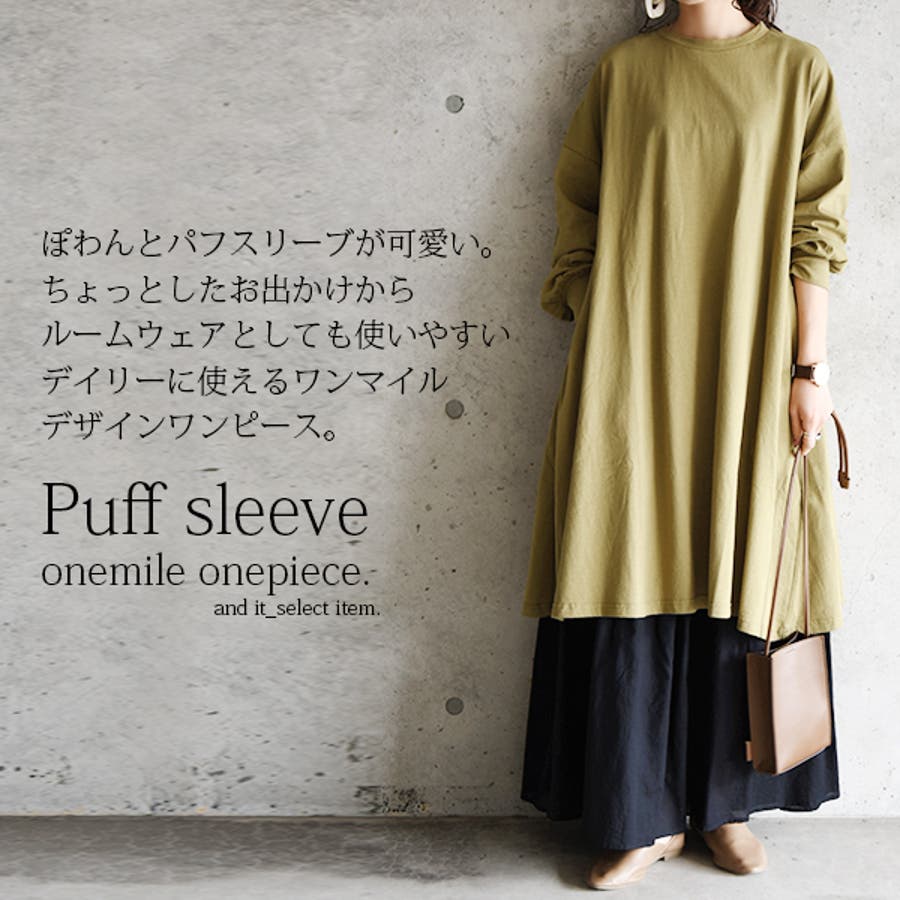 袖口は手首に優しくフィットするリブ仕様なので、ふわっとしたパフスリーブが愉しめます。綿100%の柔らか素材が、リラックスして着れるワンマイルワンピースです◎