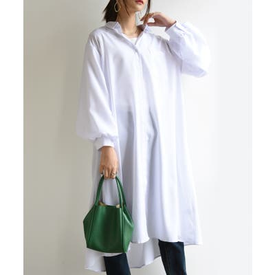 スパンブロードボリュームスリーブシャツワンピース シャツワンピ レディース
