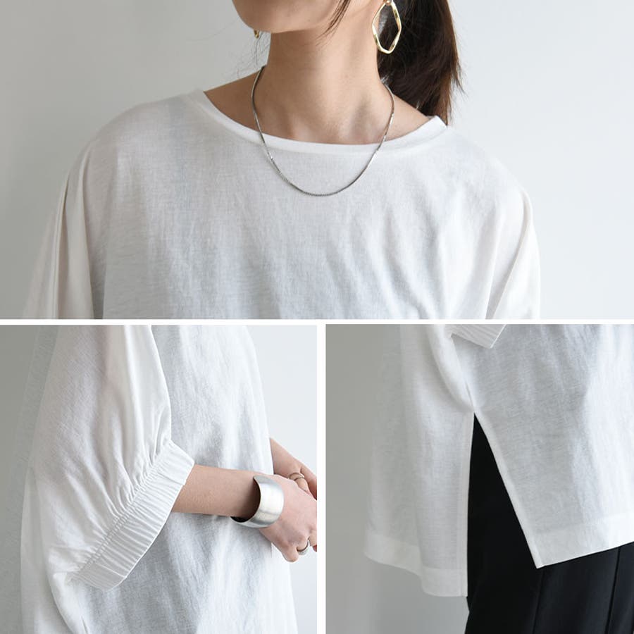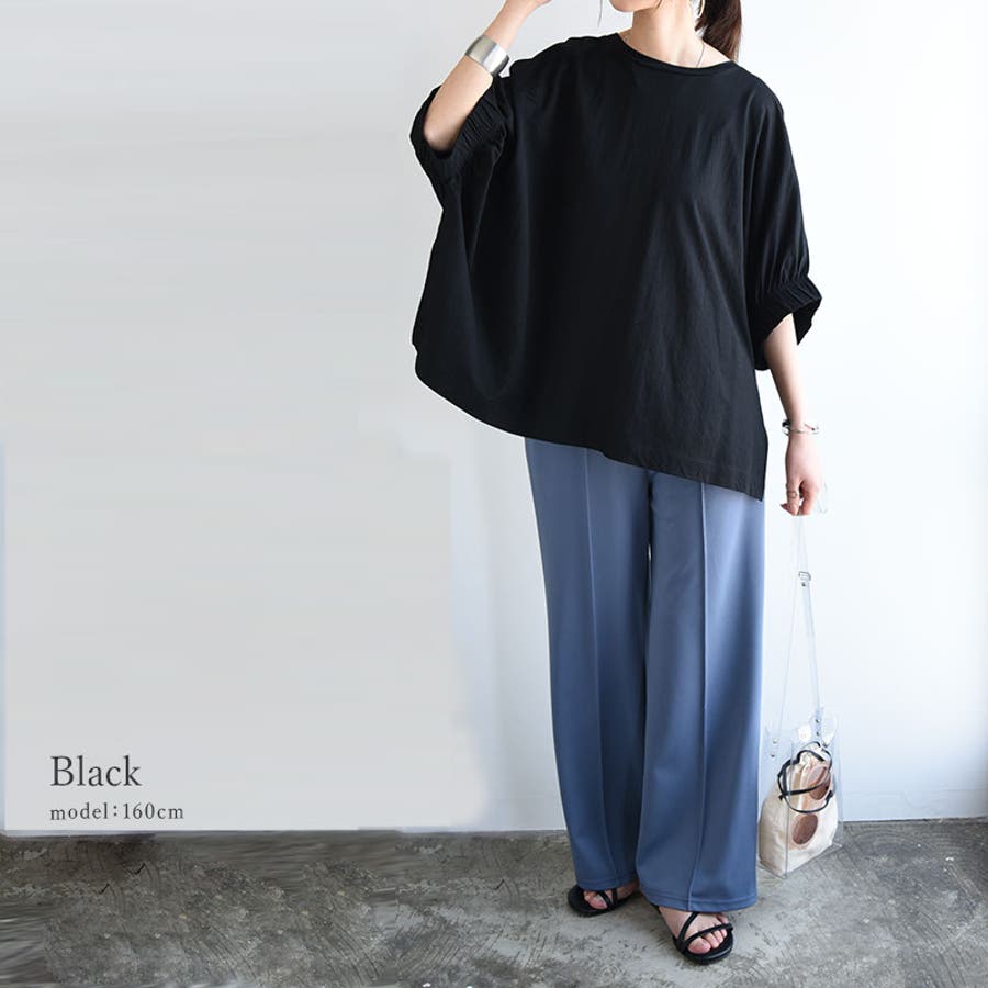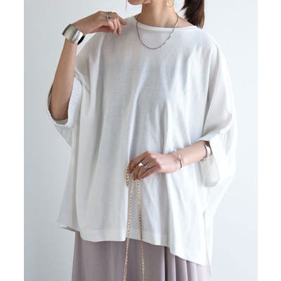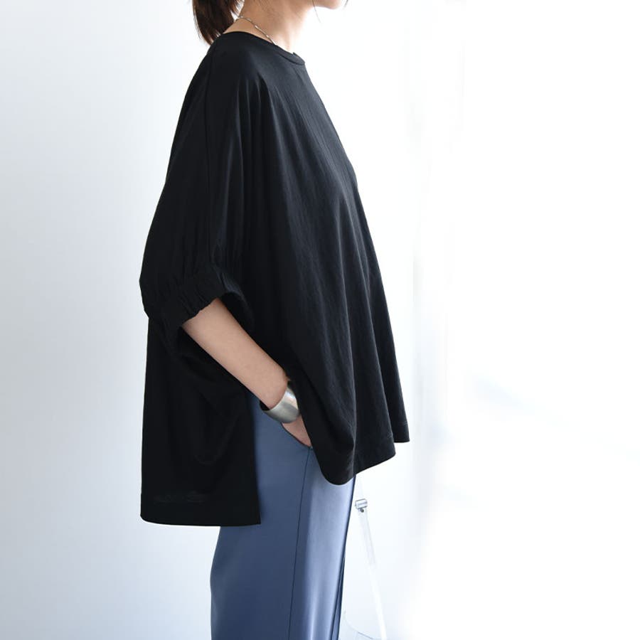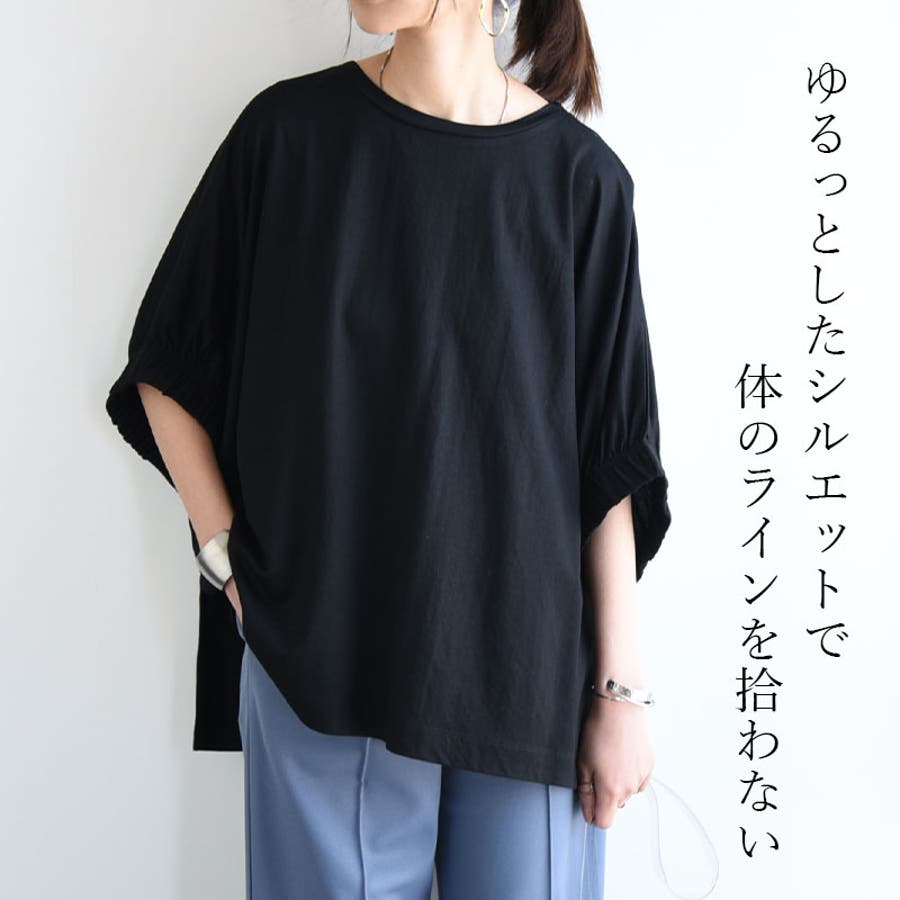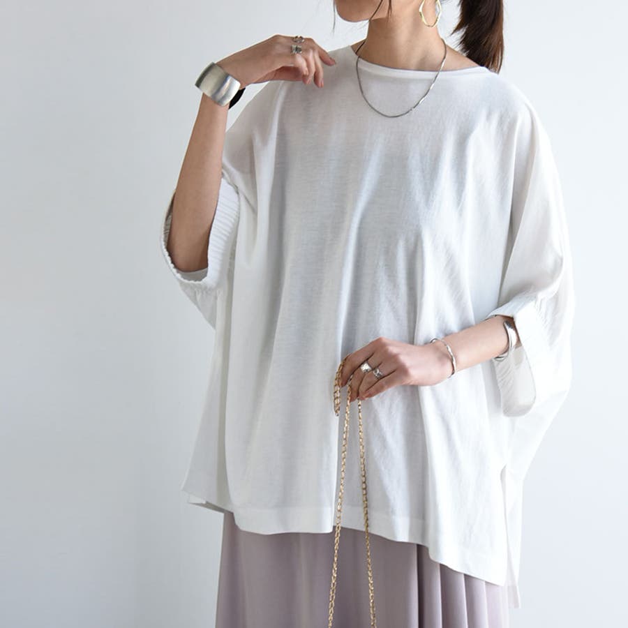 これからの時期に嬉しい接触冷感素材で、ひんやりとした着心地です。ゆったりとしたドルマンシルエットで体型カバーも叶います◎