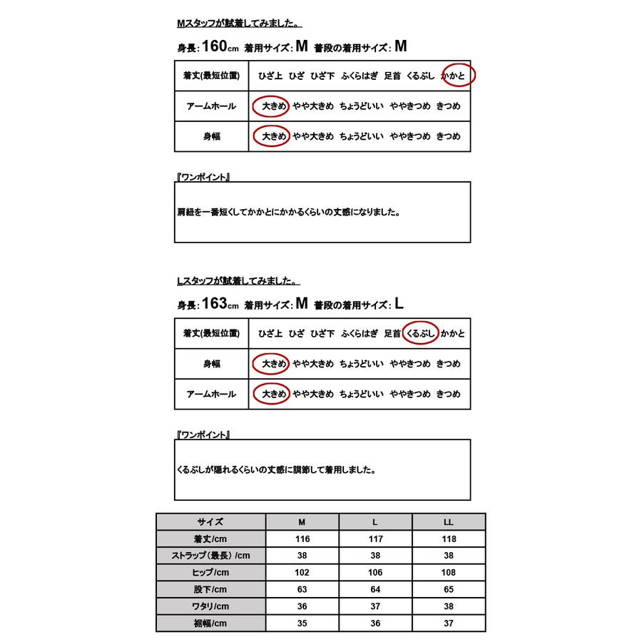 [L]着丈:約115、ストラップ:約16、ヒップ:約118、股下:約64、ワタリ:約36~39、裾幅:約37~40