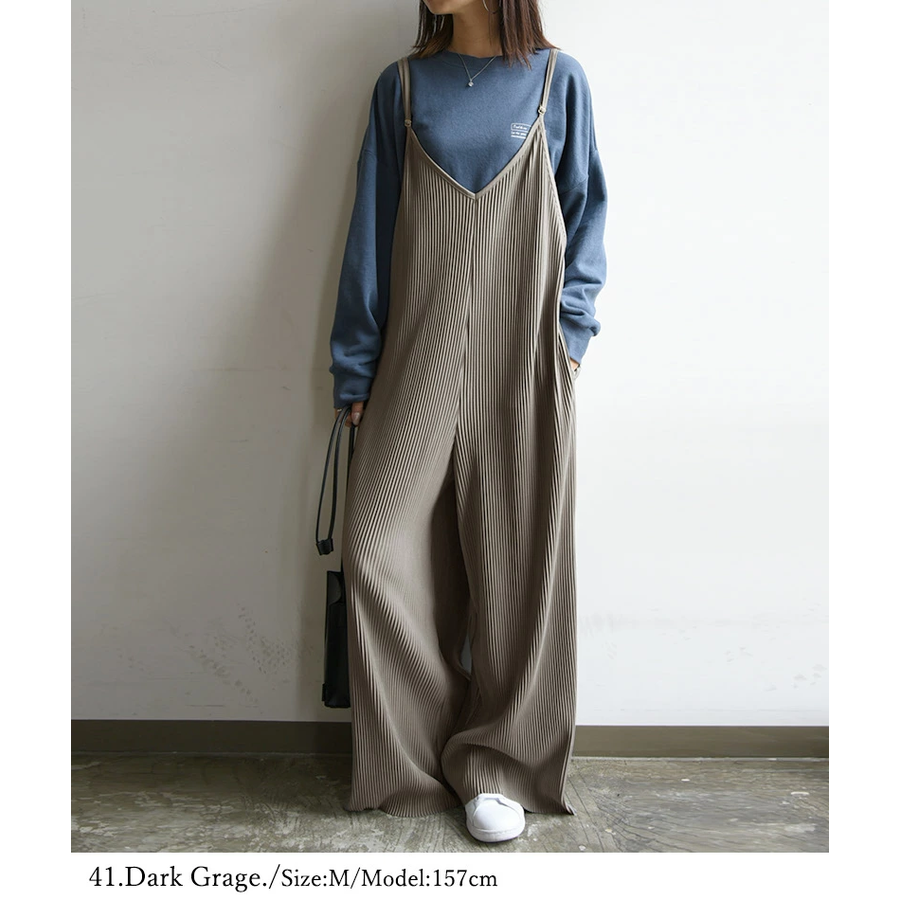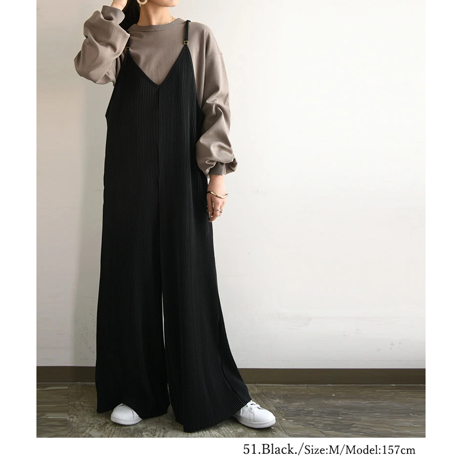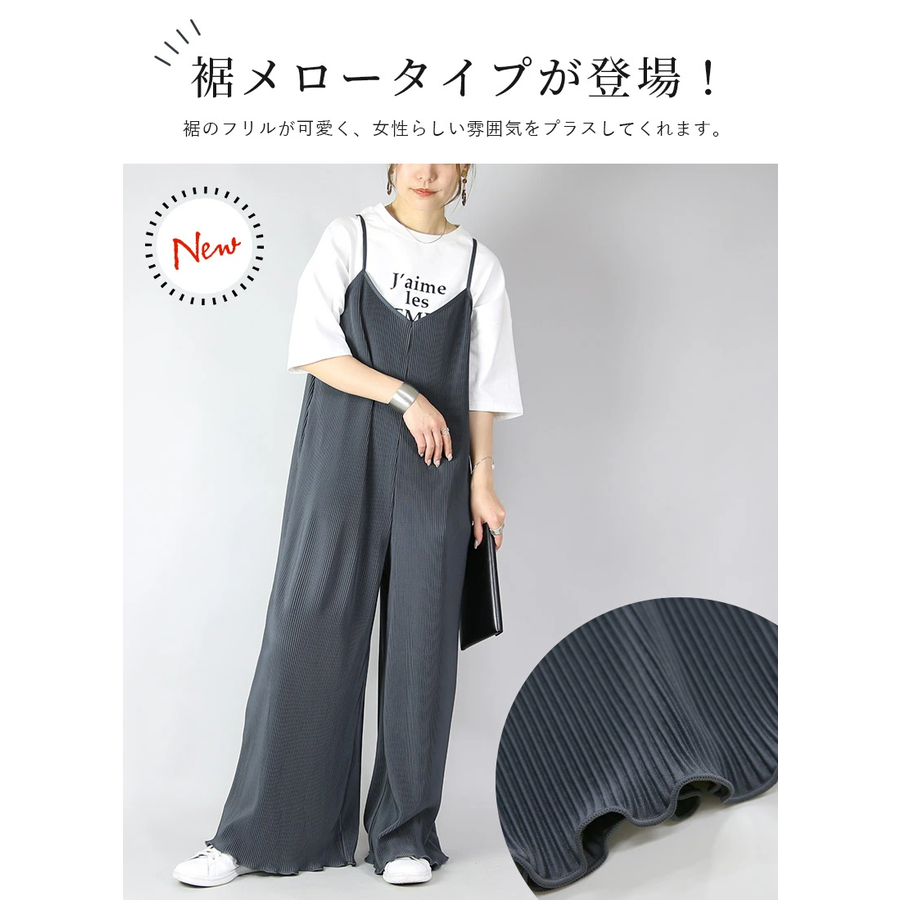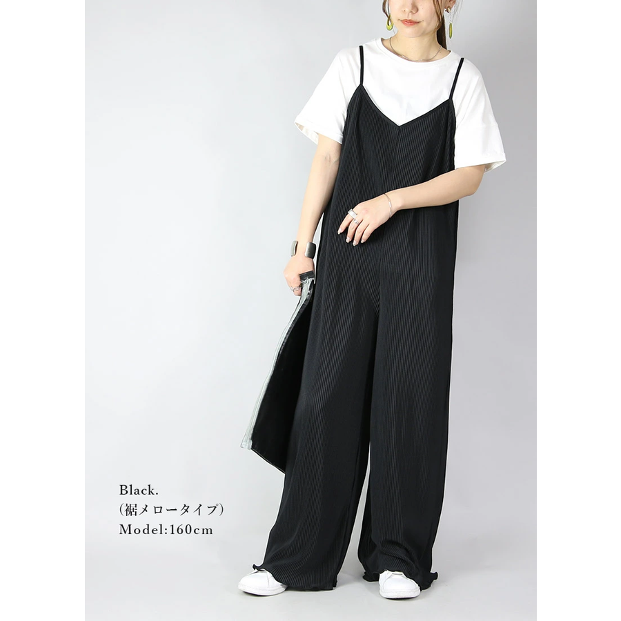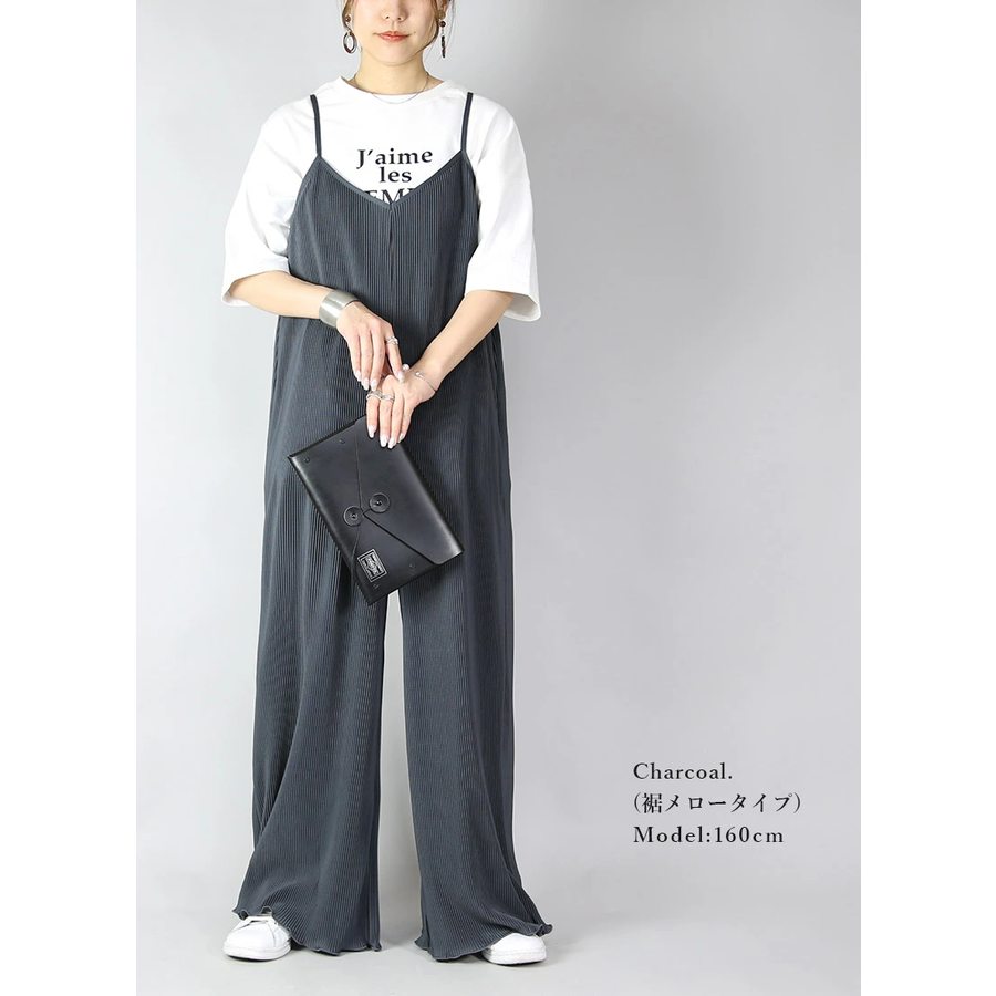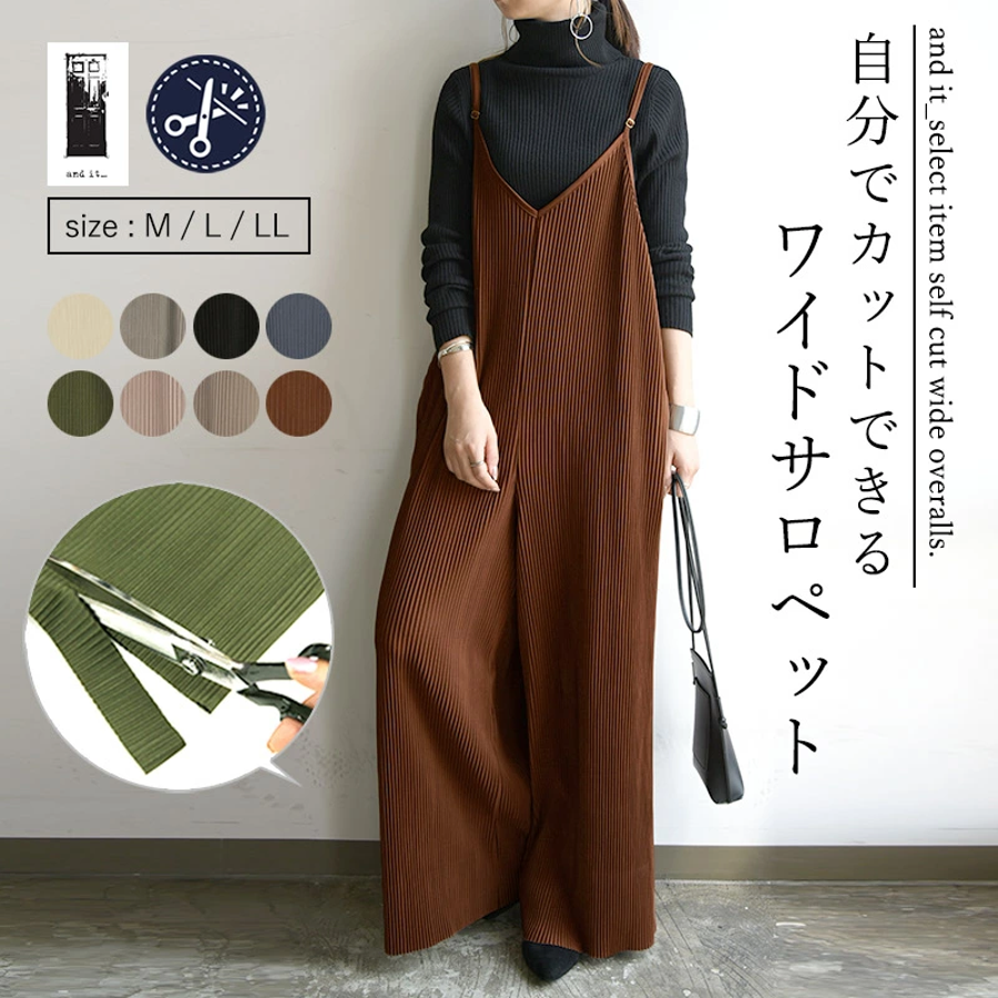 セルフカットプリーツワイドサロペット M~LL 裾カット