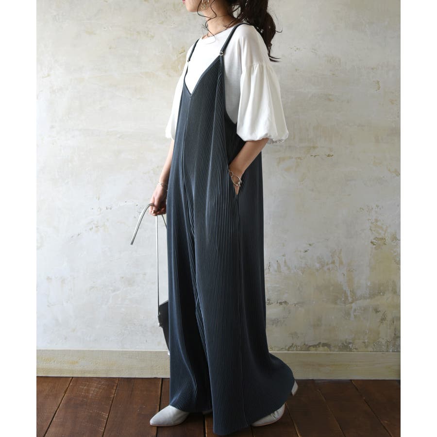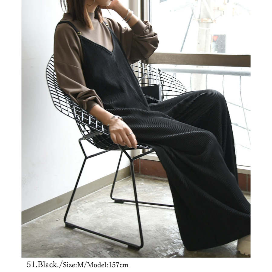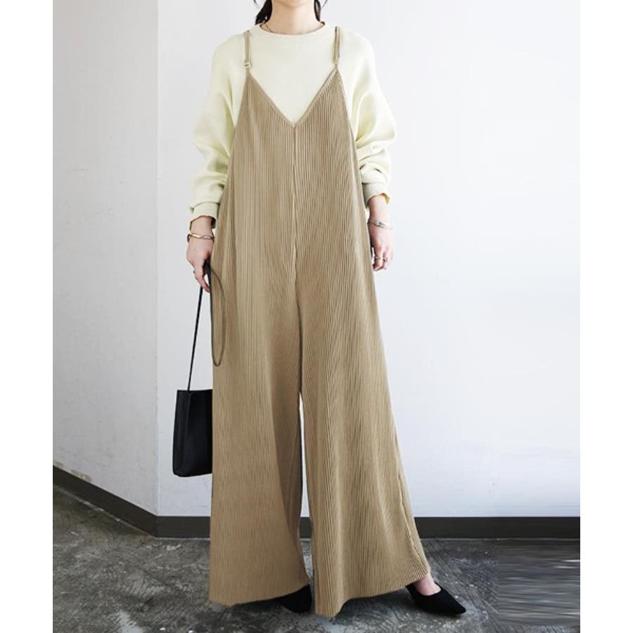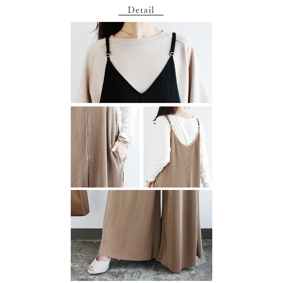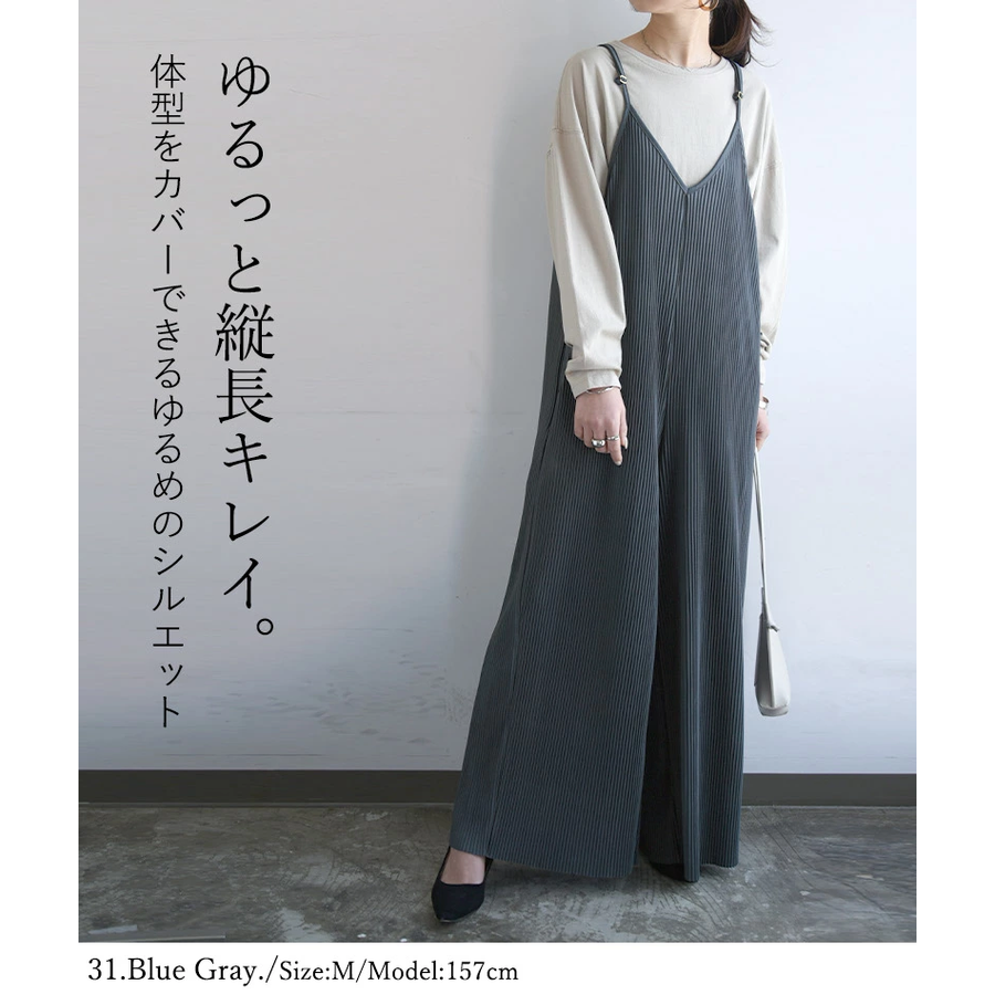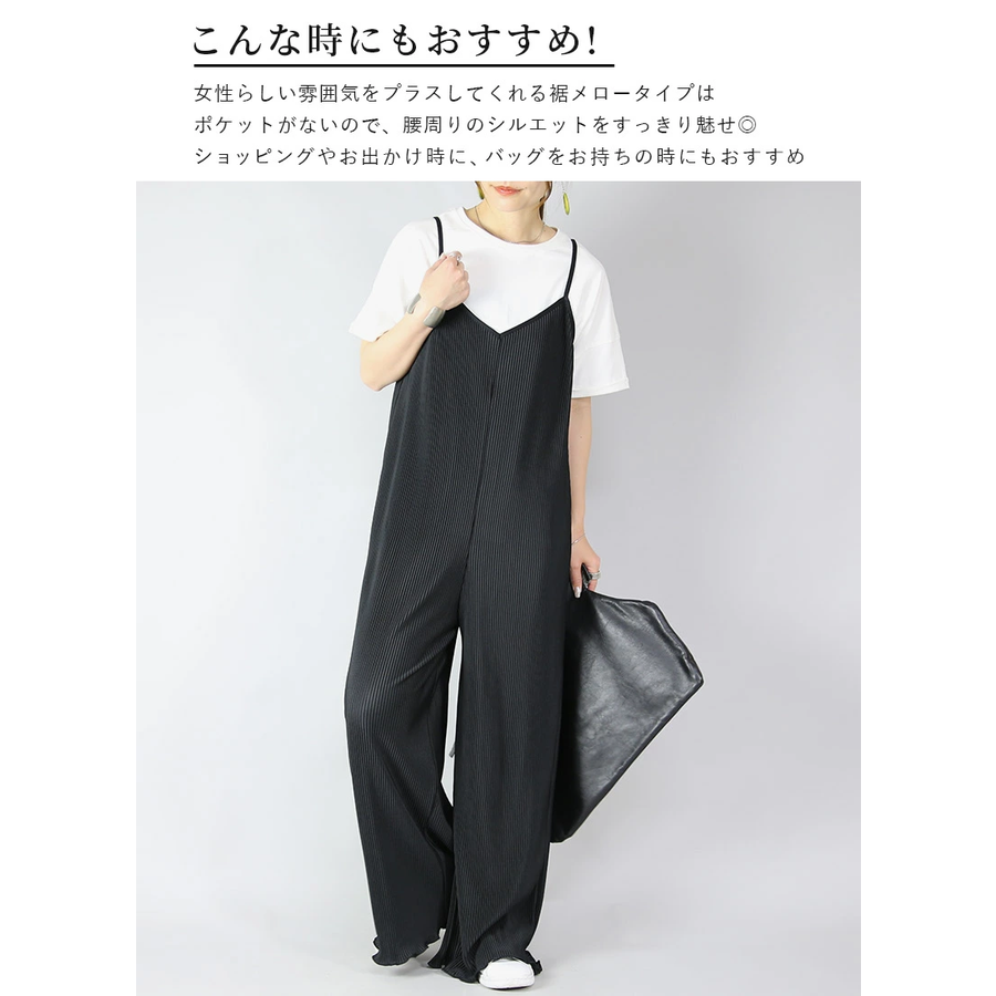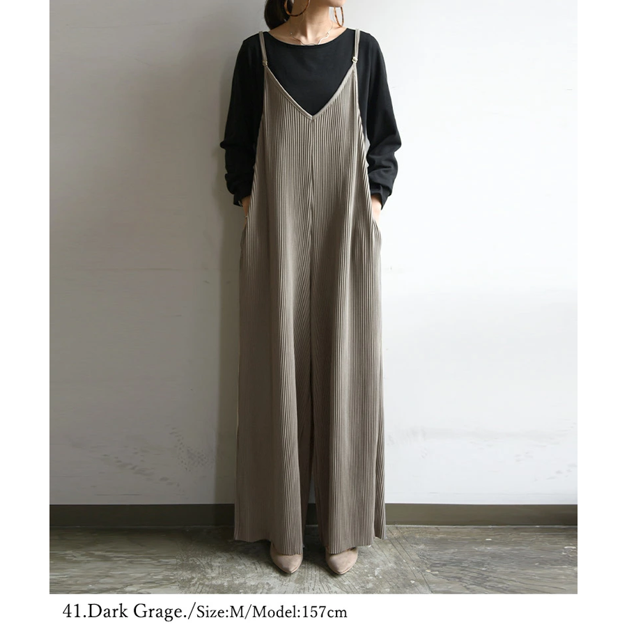 セルフカットプリーツワイドサロペット M~LL 裾カット