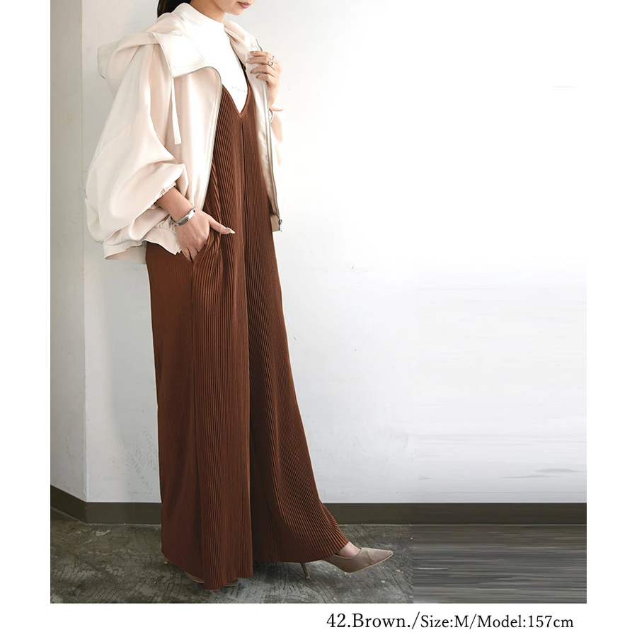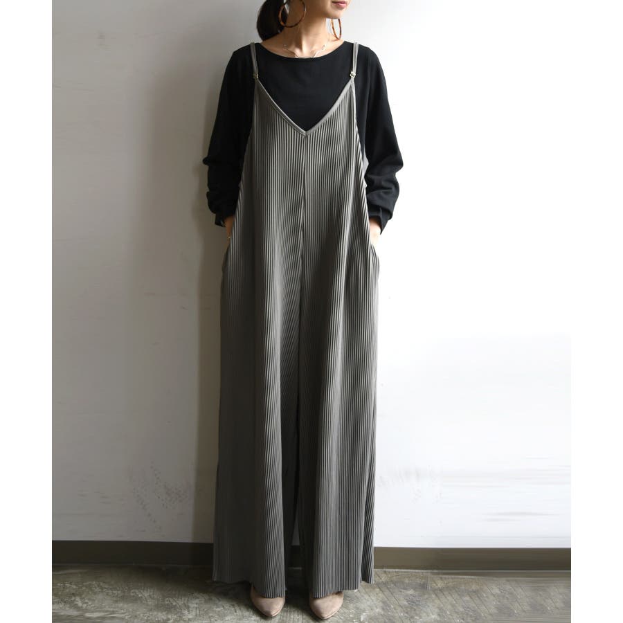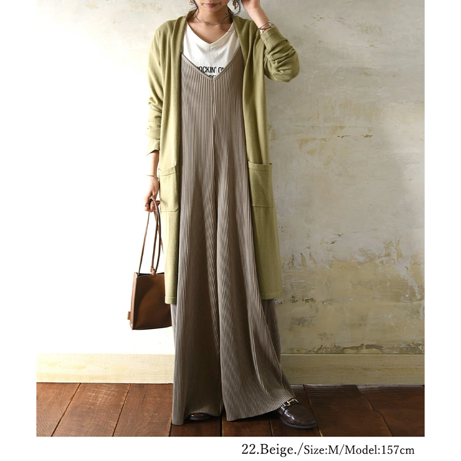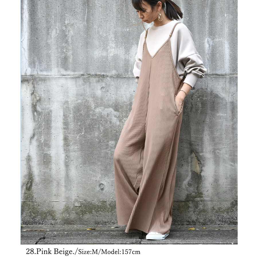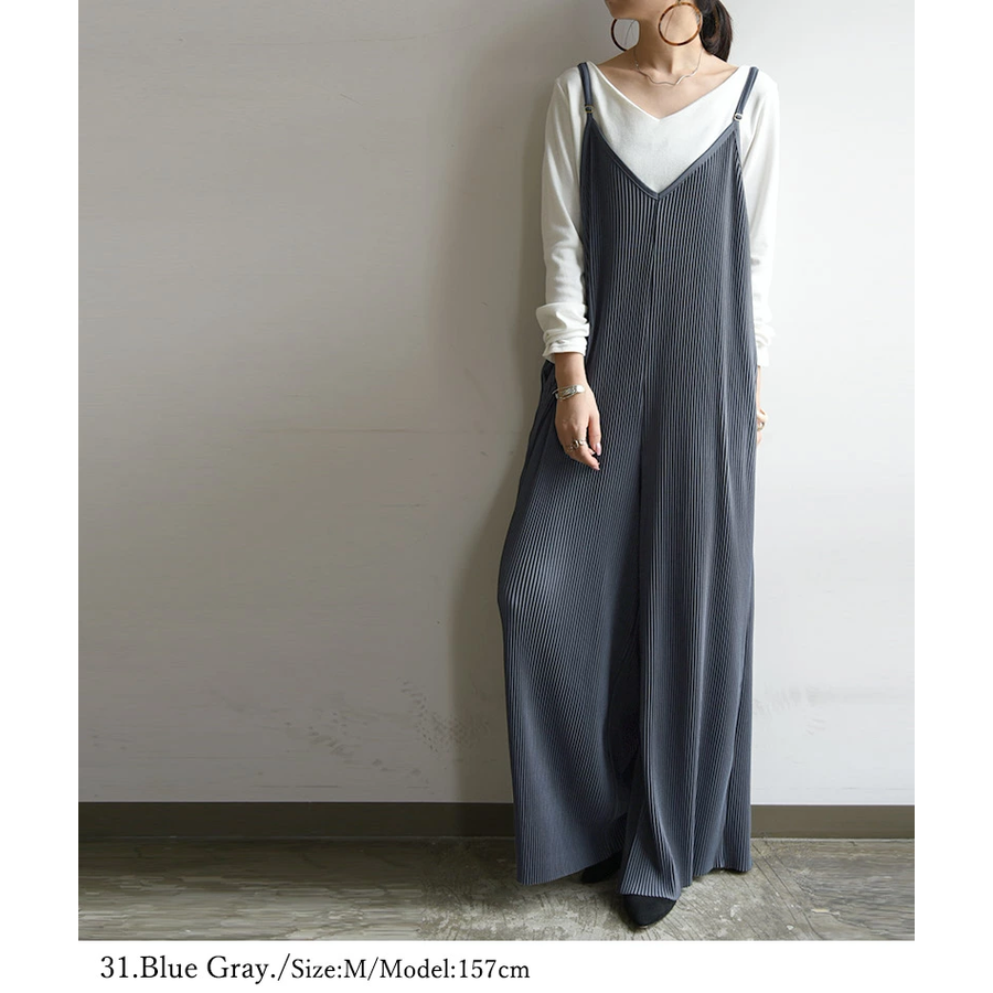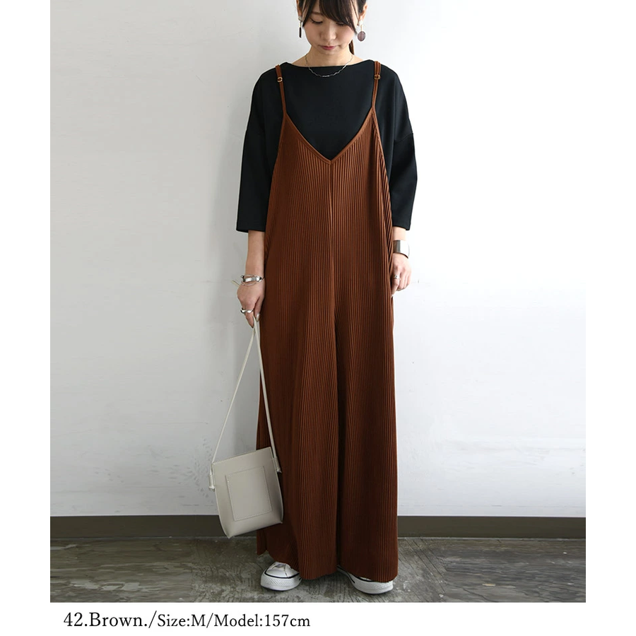 セルフカットプリーツワイドサロペット M~LL 裾カット