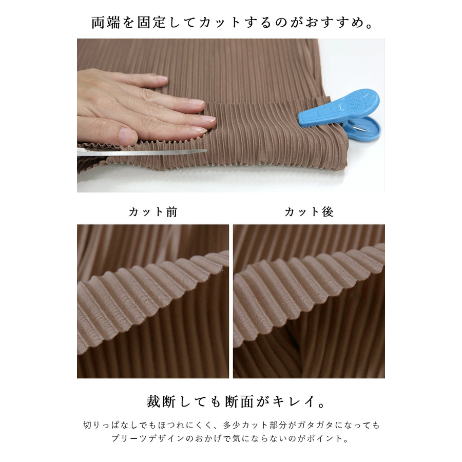 光沢感のあるプリーツ生地。自分の好みの長さに裾をカットできます♪