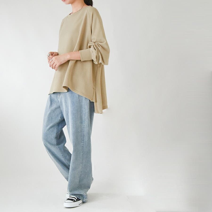 身体のラインに沿わないワイドシルエットでゆったりとラフな着心地です◎