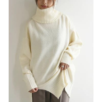 ボリュームのあるタートルネックがポイント◎裾にスリットが入った抜け感のあるデザインです。