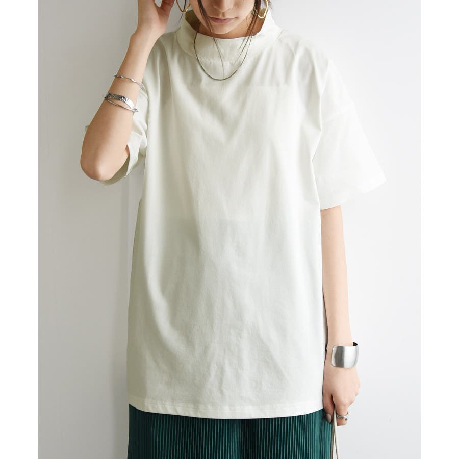「接触冷感・UVカット・速乾」の夏に嬉しいさらっとした素材。ハイネックのリブ使いがポイント。着まわしのきくベーシックなデザインです。