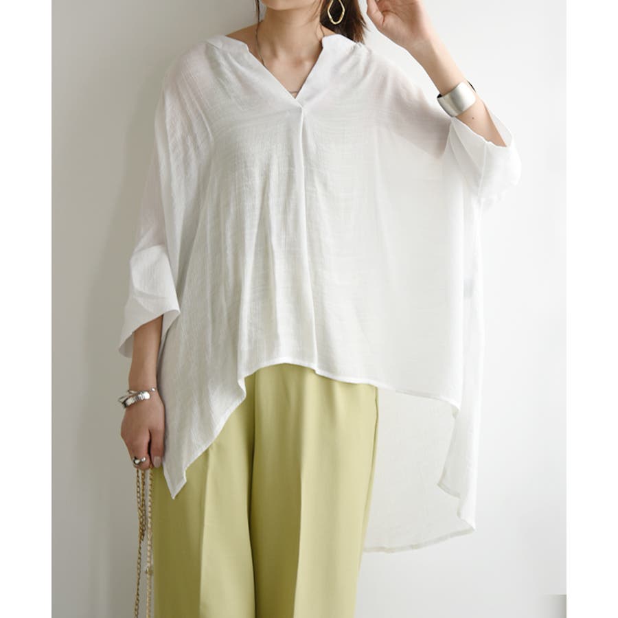 前後差のある着丈がポイント!接触冷感素材でひんやり涼しい着心地。軽量でシワが気になりにくい素材感です。