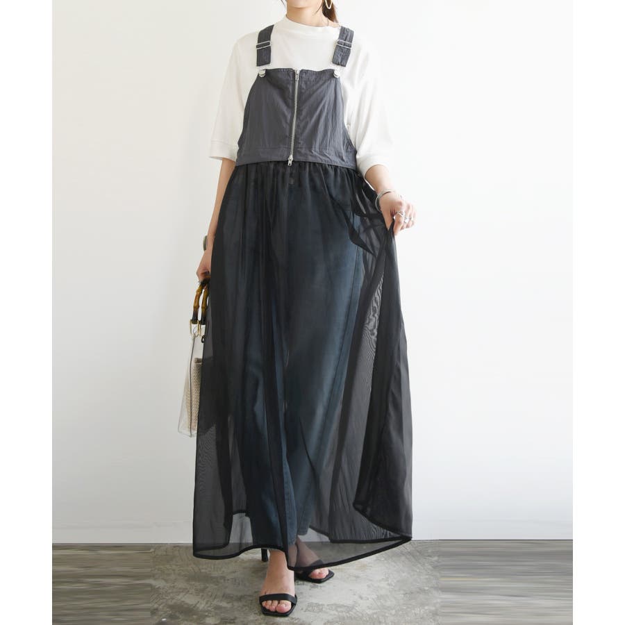 タフタ×オーガンジーマルチ2wayサロペットワンピース レディース 春夏
