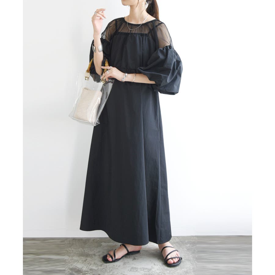 肩部分のシアー素材使いがぬけ感を演出!異素材の組み合わせがトレンド感満載のワンピースです。
