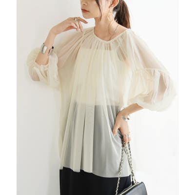 【69-ブラック】チュールレイヤードギャザーブラウス ブラウス レディース