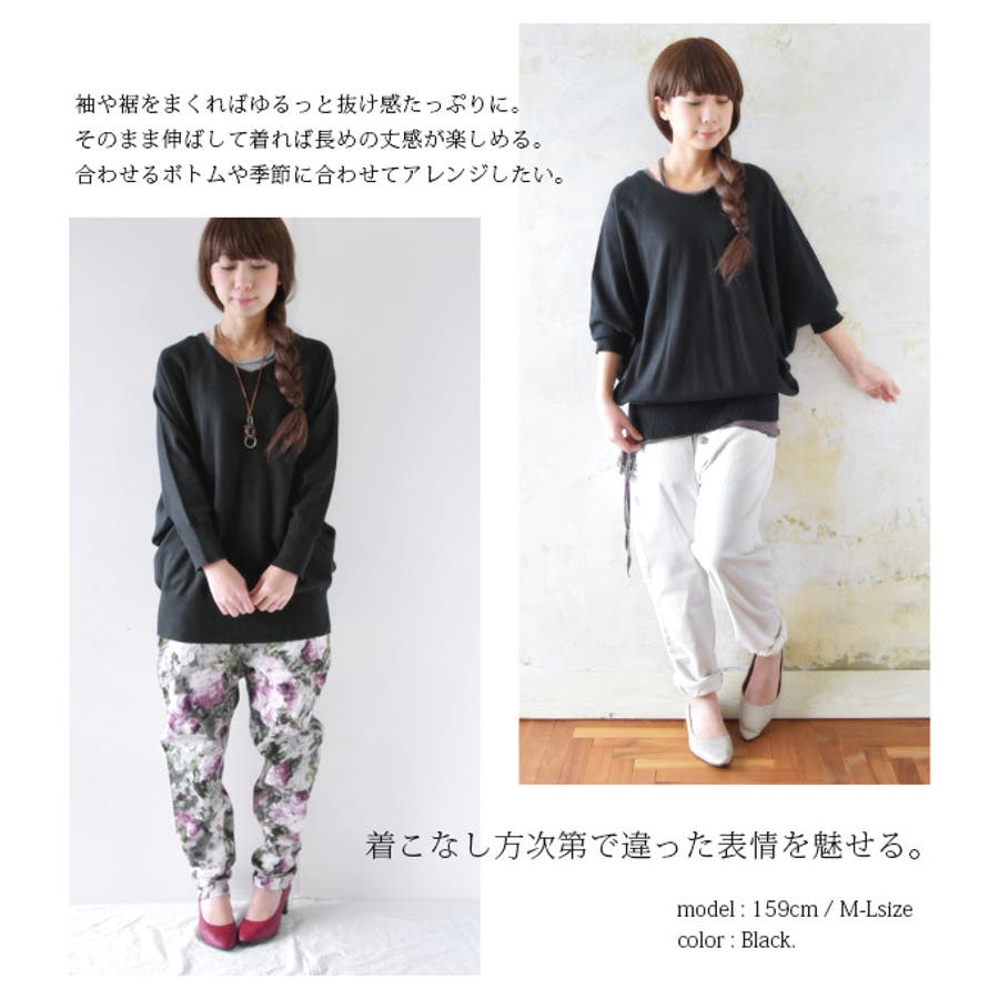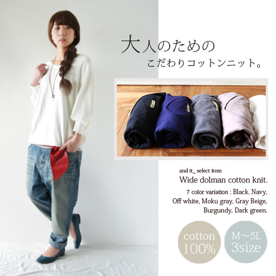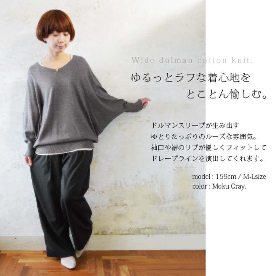 綿ニット ゆったりワイドドルマンコットンニット 【M】【L】【LL】【3L】【4…