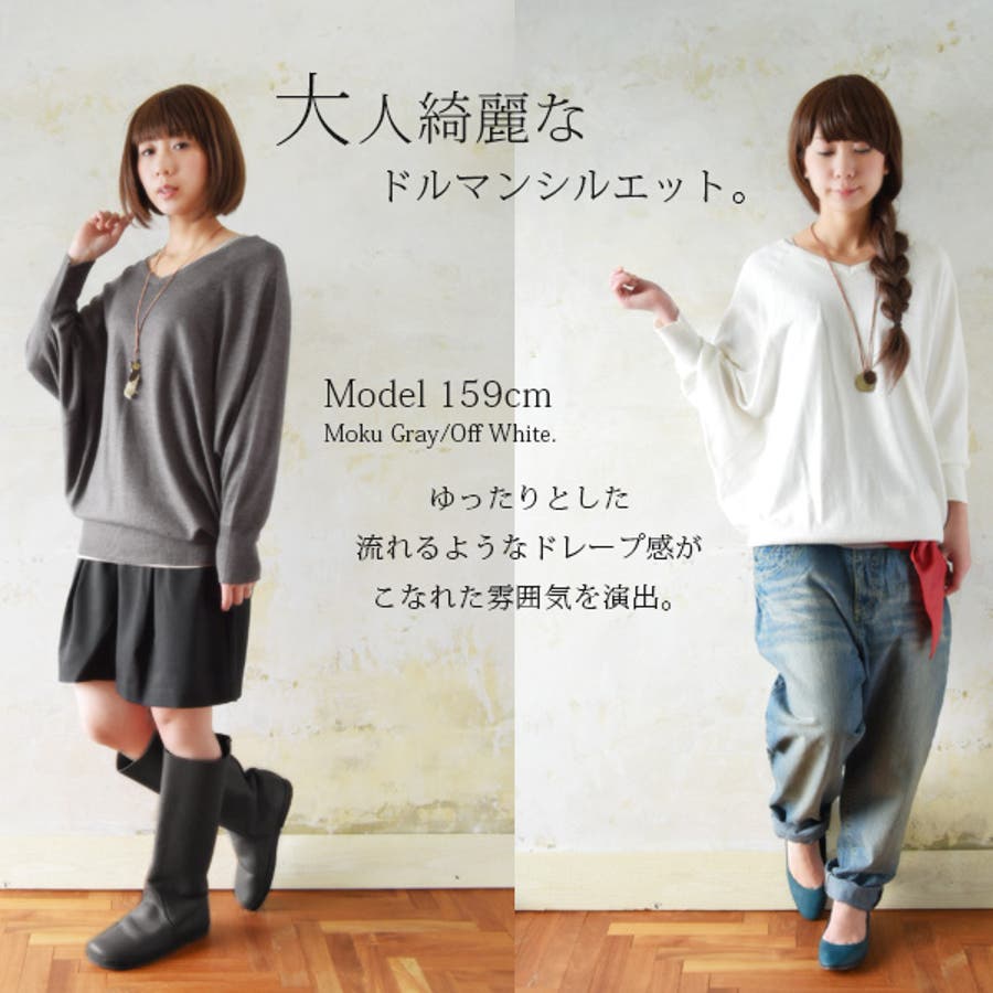 やわらかな生地感が魅力の綿100%素材を使用したドルマンニット。