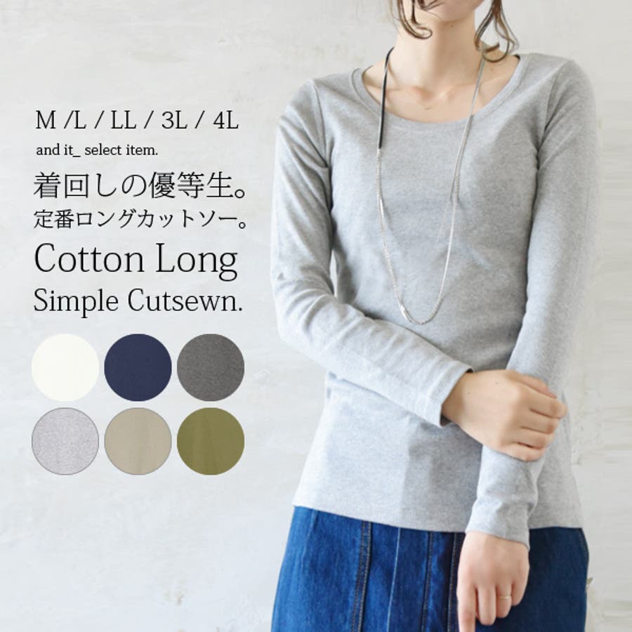 コットンロングシンプルカットソー(ロンT)【M】【L】【LL】【3L】【4L】(…
