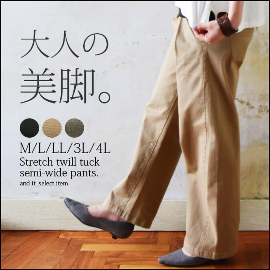 ストレッチツイルタックセミワイドパンツ【M】【L】【LL】【3L】【4L】(レデ…