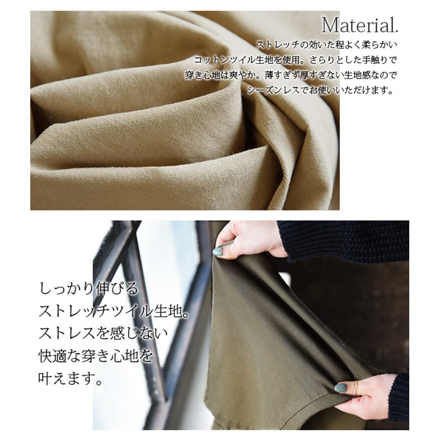 しっかりと伸縮性があるストレッチツイル生地を使用。程良く厚みがあり丈夫な生地感です。