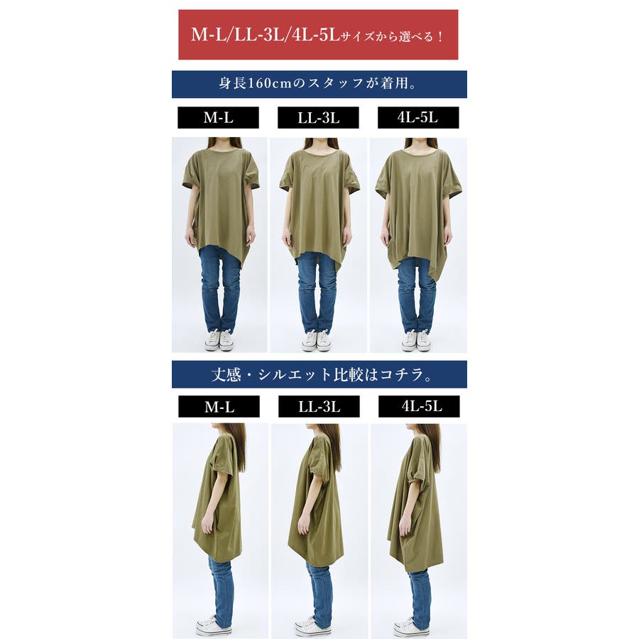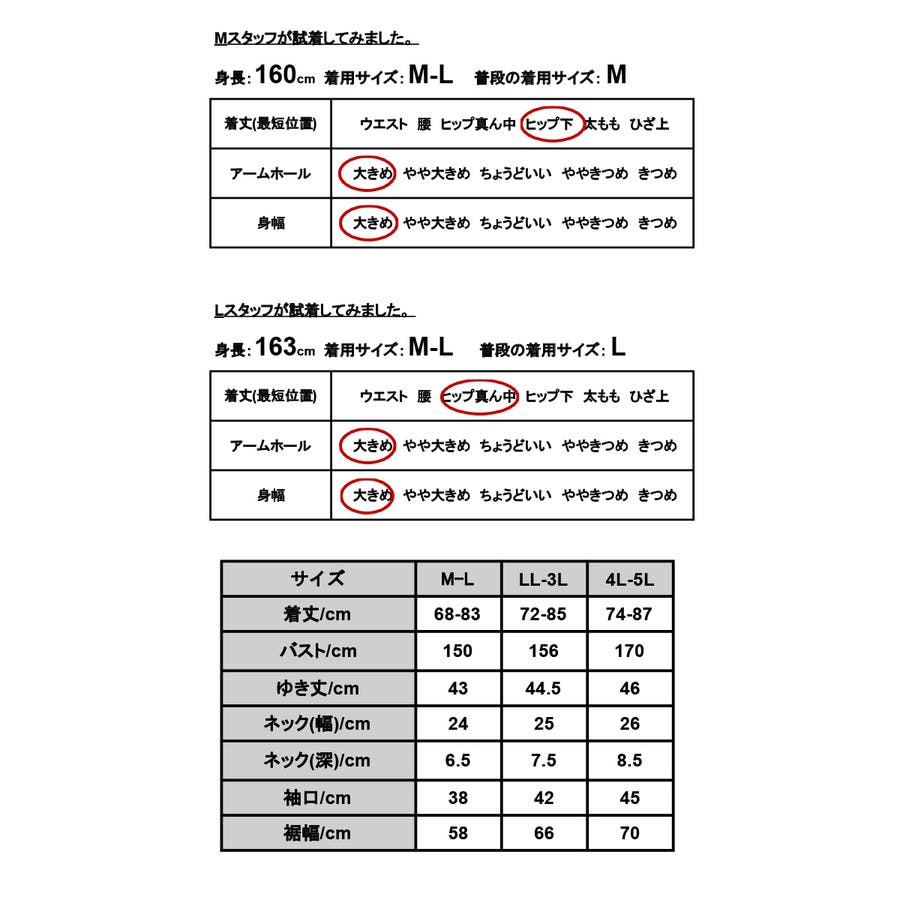 [4L-5L]着丈:(最短)約74(最長)87、バスト:約170、ゆき丈:約46、ネック:(幅)約26(深さ)約8.5、袖口:約45、裾幅:約70