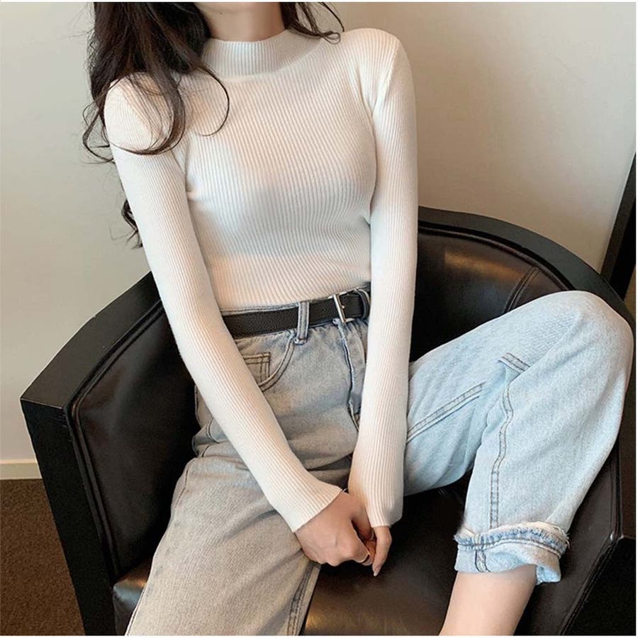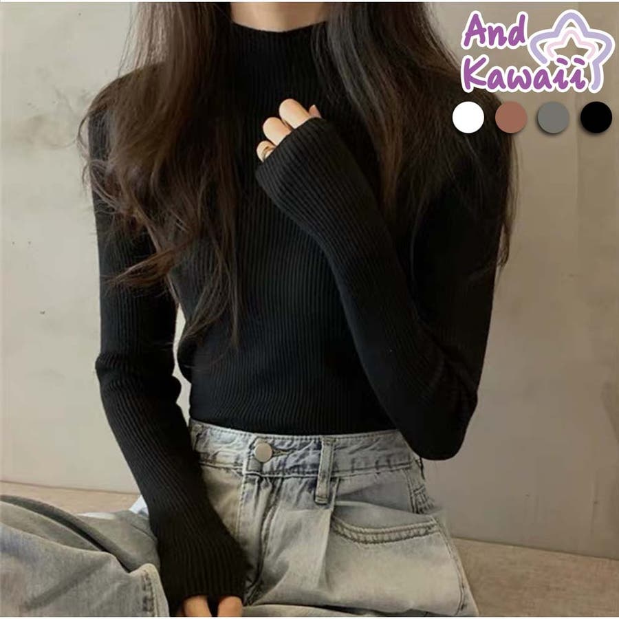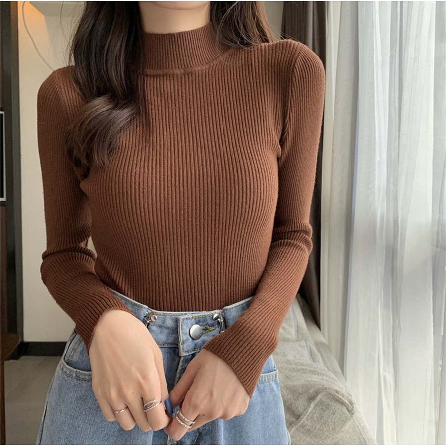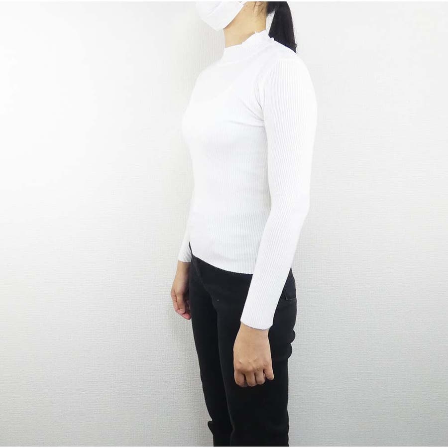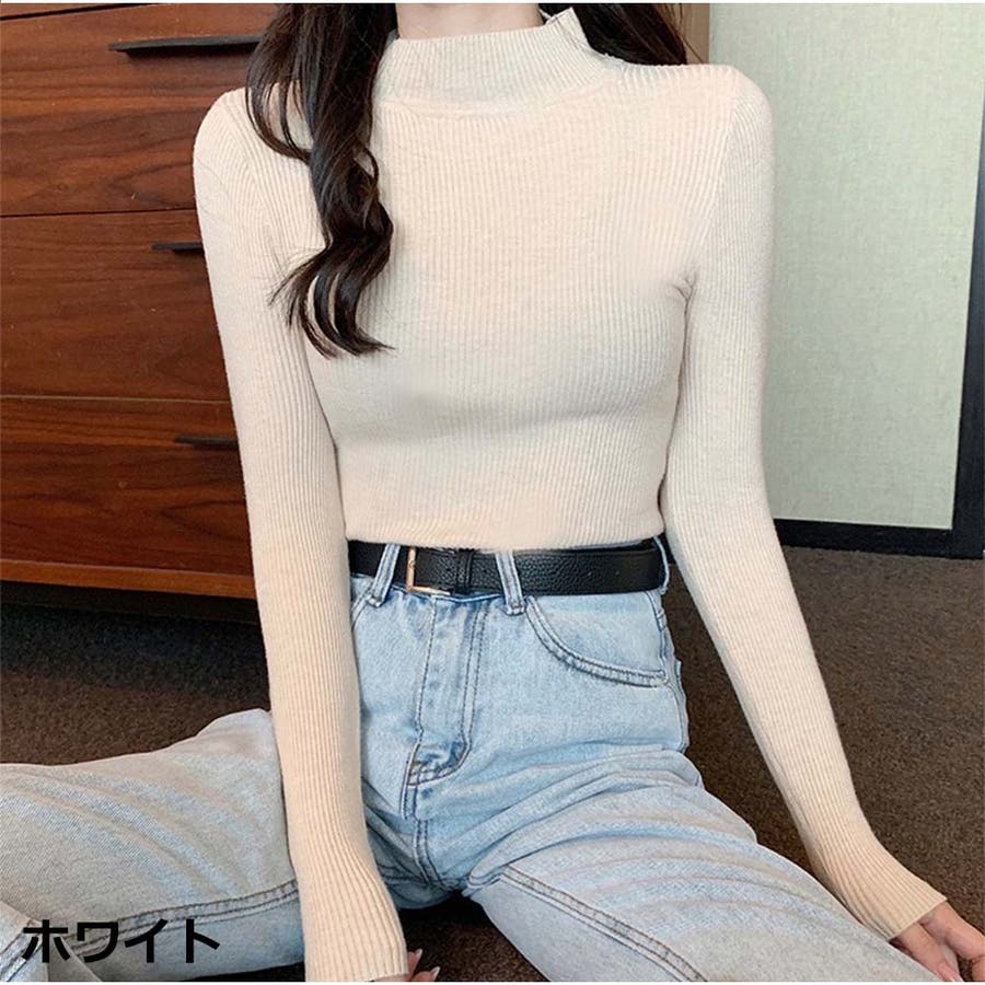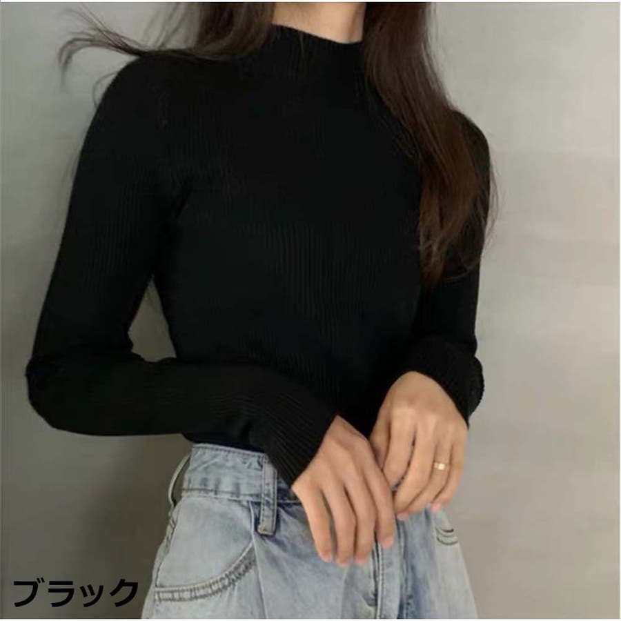 リブニット 長袖 薄手 ハイネック 無地 シンプル レディース 秋新作