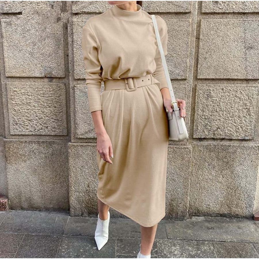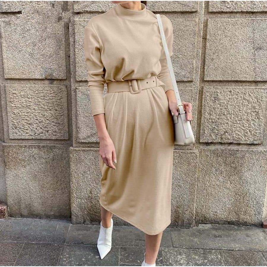 ベルトを使い、ウエストマークしてスタイルアップさせても可愛いです。