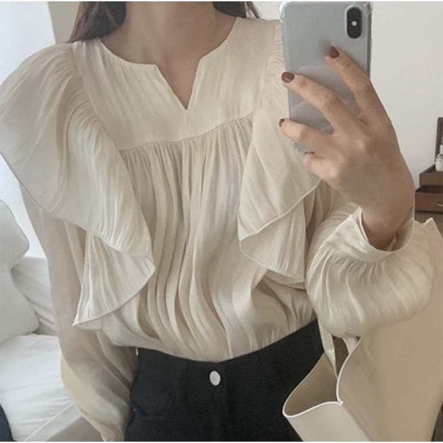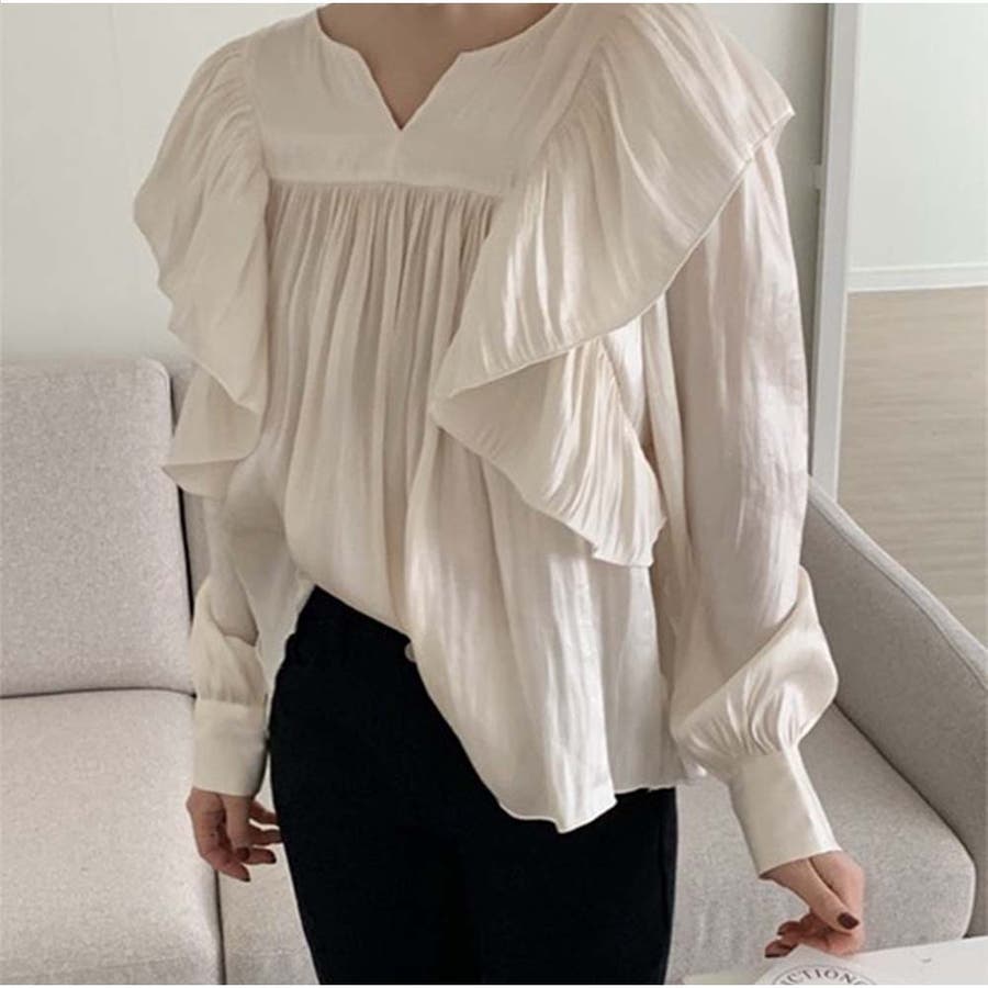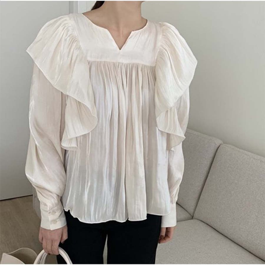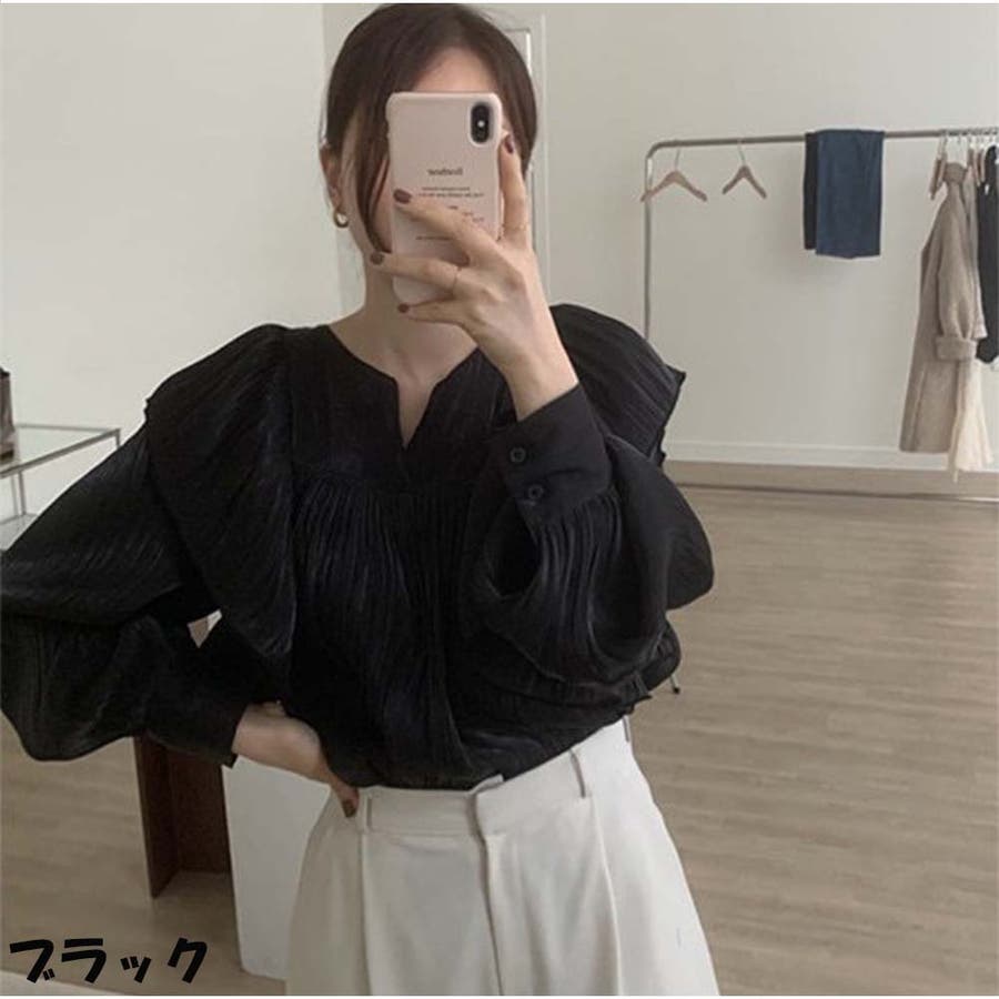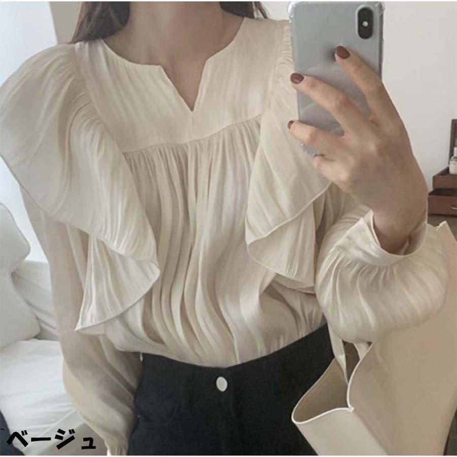 トップス シャツ フリル レディース 春新作 ブラウス 長袖 韓国ファッション