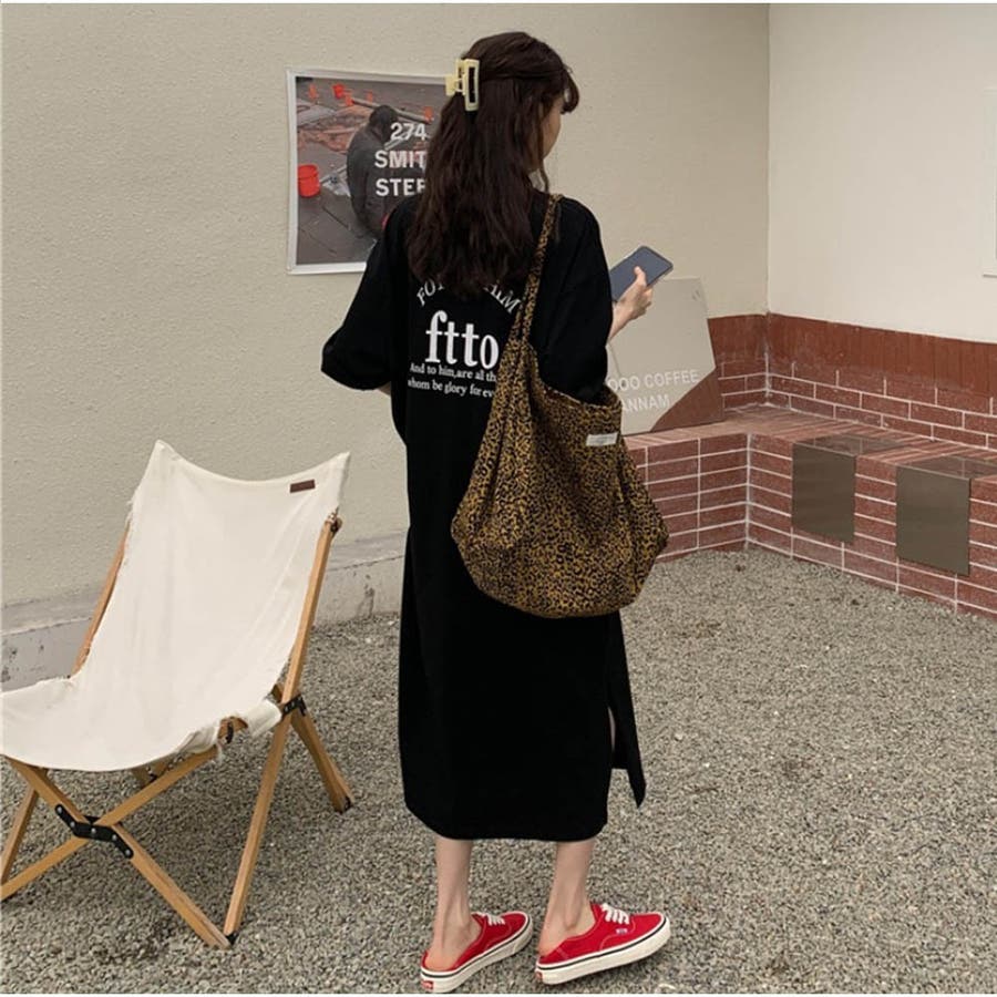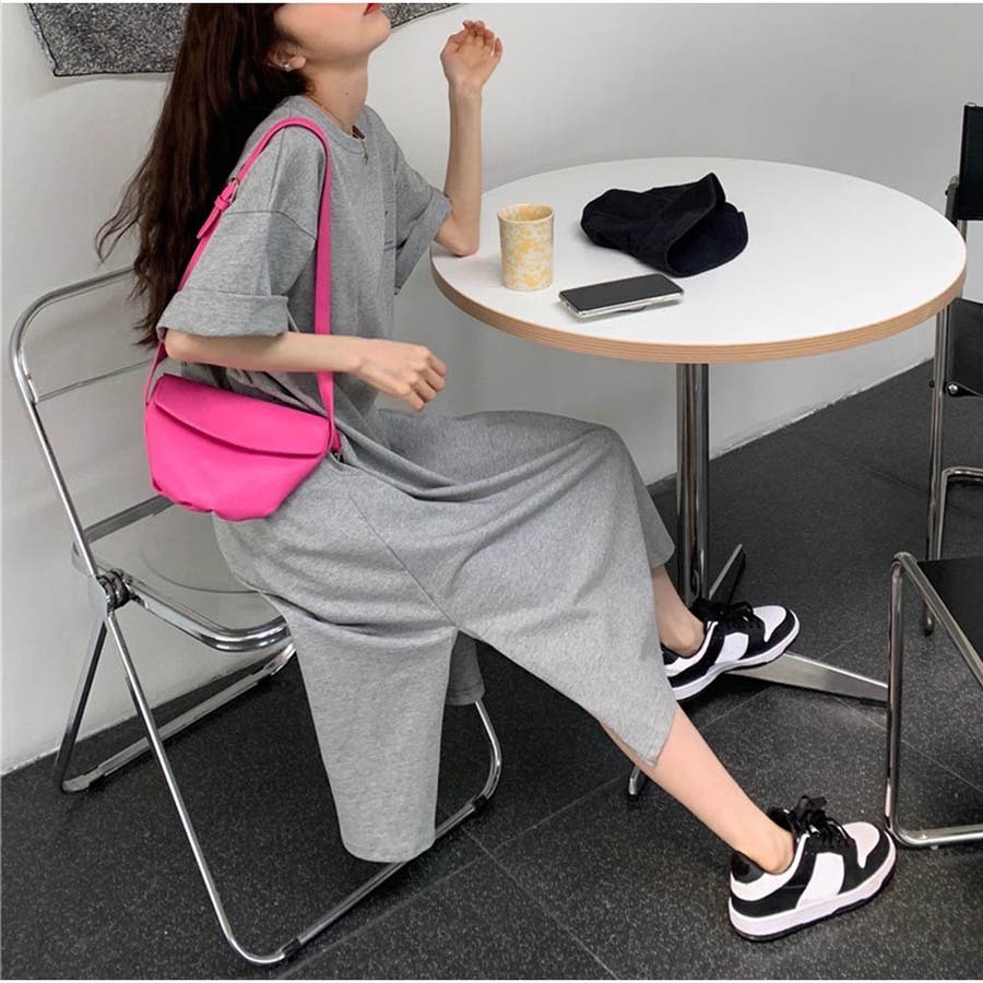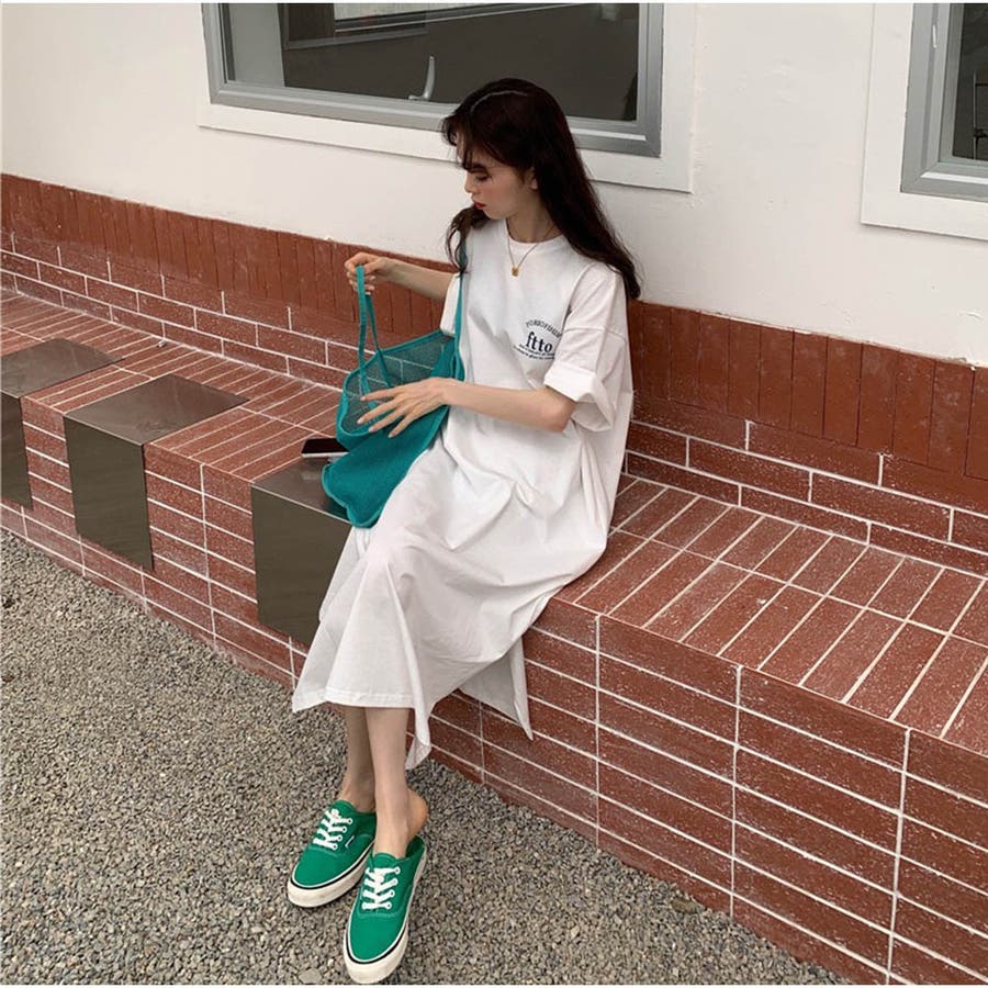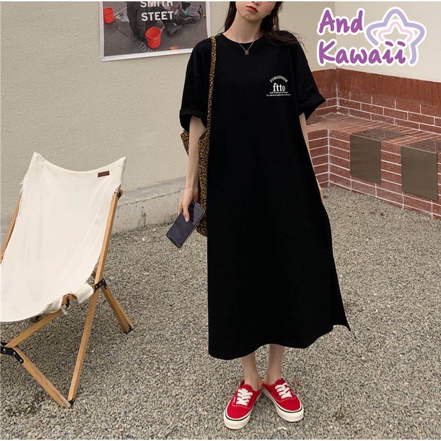 Tシャツワンピース 前後ロゴプリント ミモレワンピ