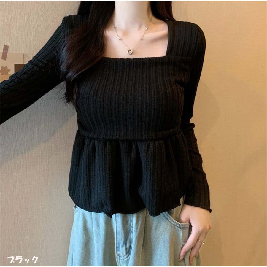 ニット スクエアネック 長袖ニットセータートップス 秋冬 韓国ファッション